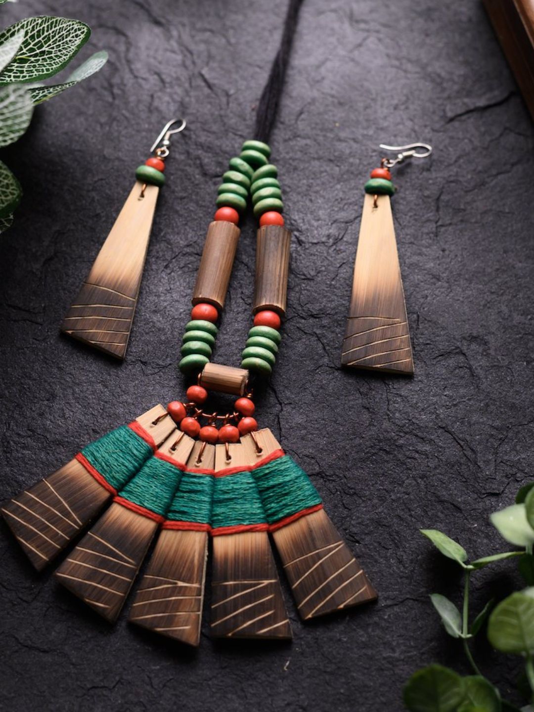 Go ethnic, with this beautiful handmade Bamboo Tribal jewellery set, created by the artisans of Eastern India! Jewellery crafted from bamboo and inspired by the adornments of tribal women from Birbhum district of Bengal.