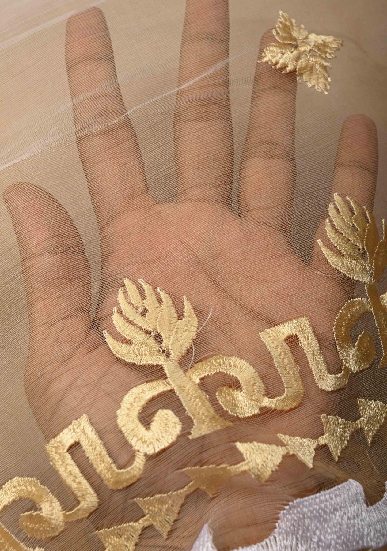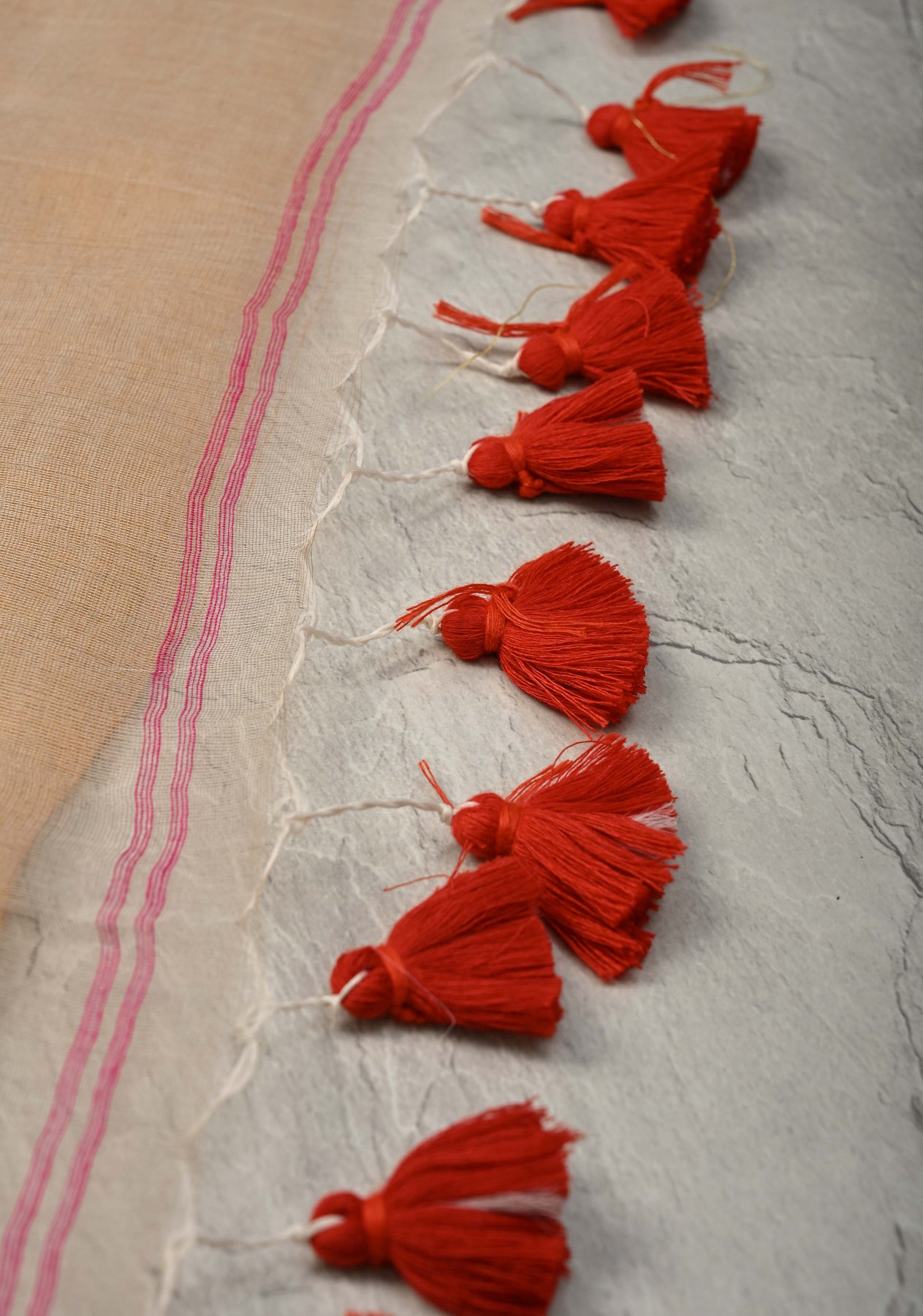 Light Brown Bengal Cotton Muslin Saree with Jamdhani Style Butta,Border and long tassels