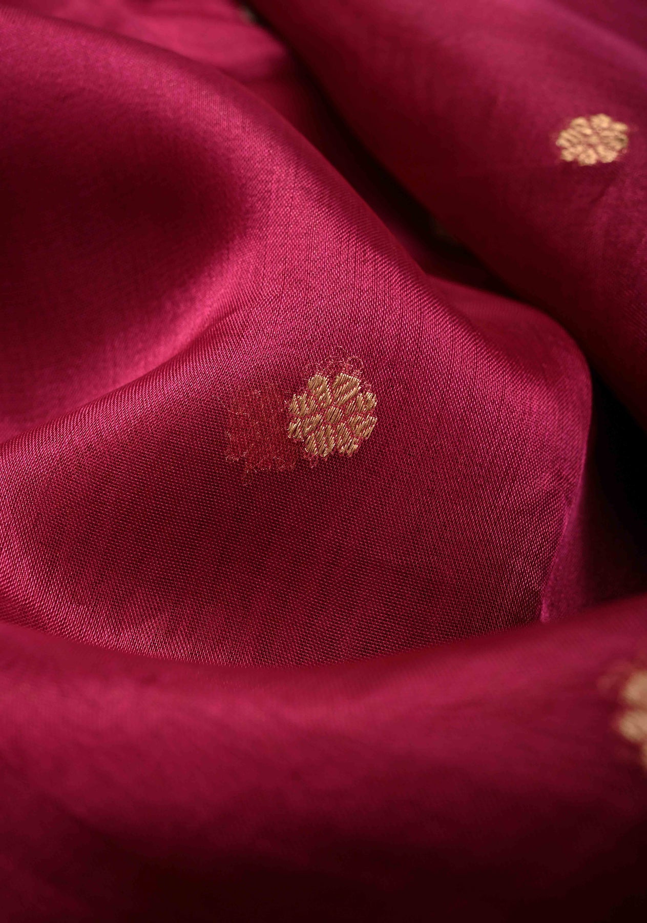 Make a statement with this vibrant Magenta Organza Silk Saree, a perfect blend of modern charm and traditional elegance. The sheer, lightweight organza silk drapes gracefully, exuding a delicate shimmer with every movement. Adorned with exquisite Sona Rupa Chunri buttis, the saree showcases intricate motifs in gold and silver tones that add a touch of opulence.
