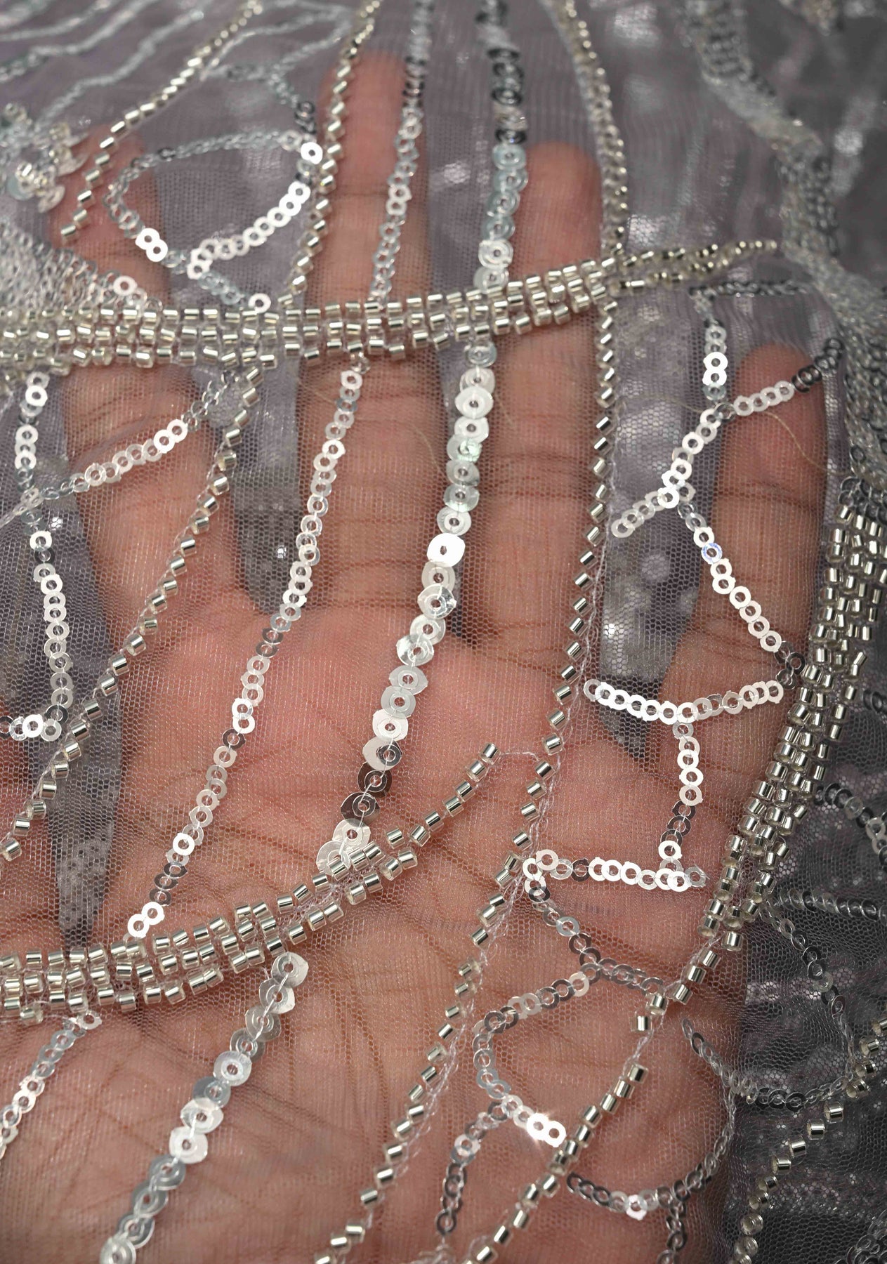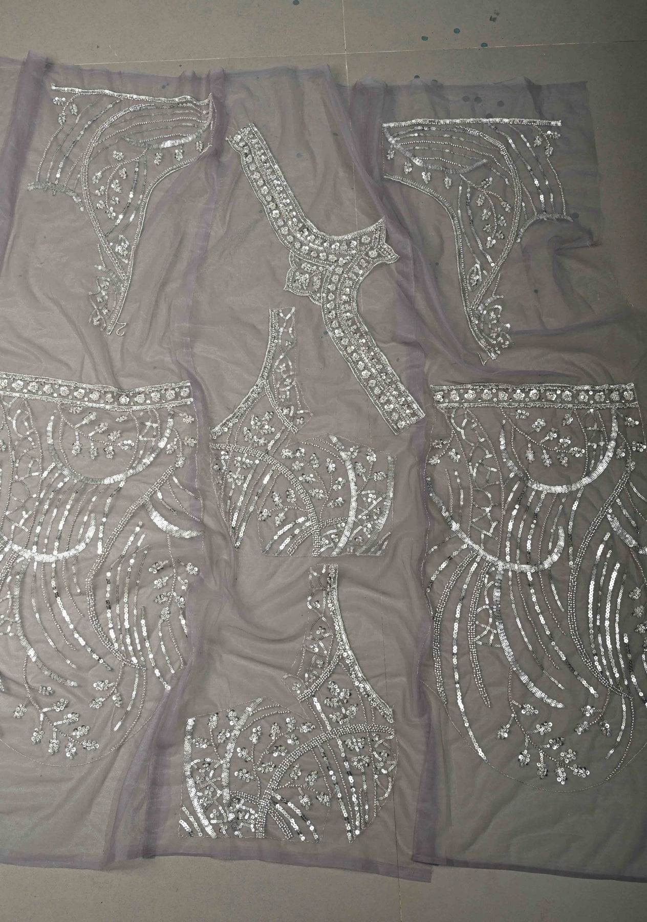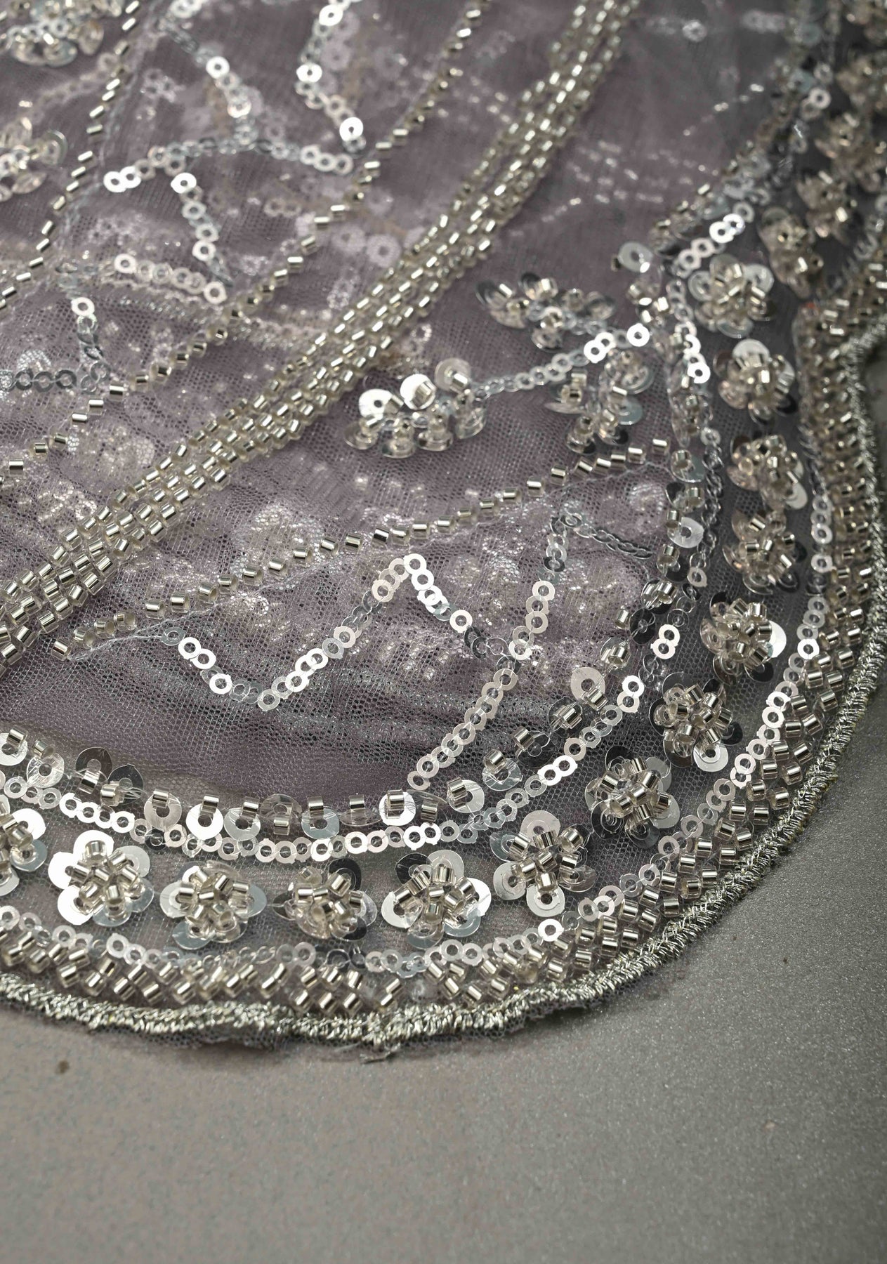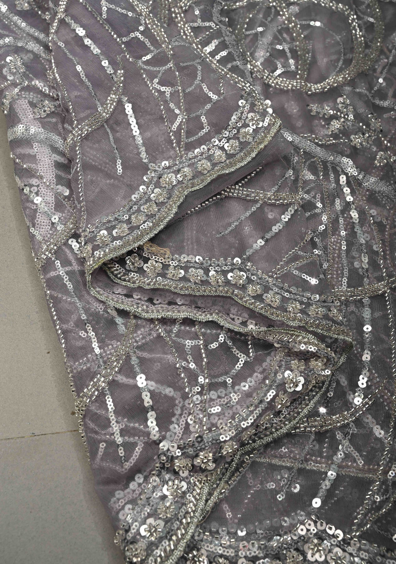 The saree showcases a beautiful swirling design adorned with sequins and cutdana, adding shimmer and artisanal charm. The scallop border provides a refined and feminine finishing touch. Pair it with a matching or contrast blouse to create a contemporary yet traditional ethnic look.