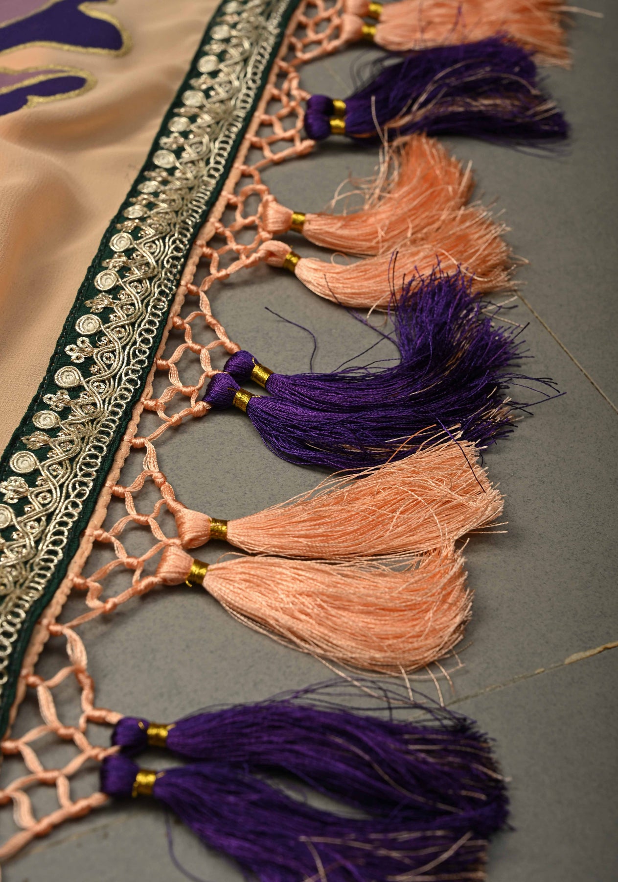 The saree is ready to wear with fall and pico complete. Handmade silk tassels add more beauty