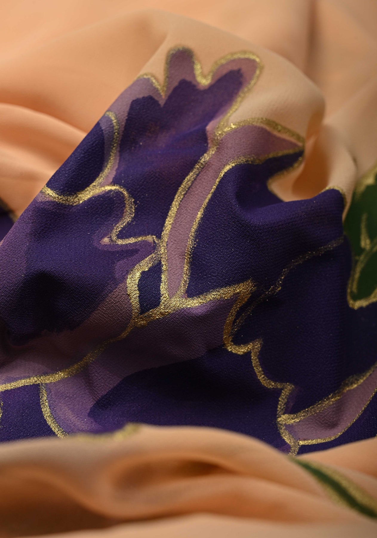 Note: This is a completely hand painted saree. There may be slight dye smudges, slight marks etc owning to the hand printed nature of it. These are characteristic and add to the authenticity of the saree and are not considered as defects!