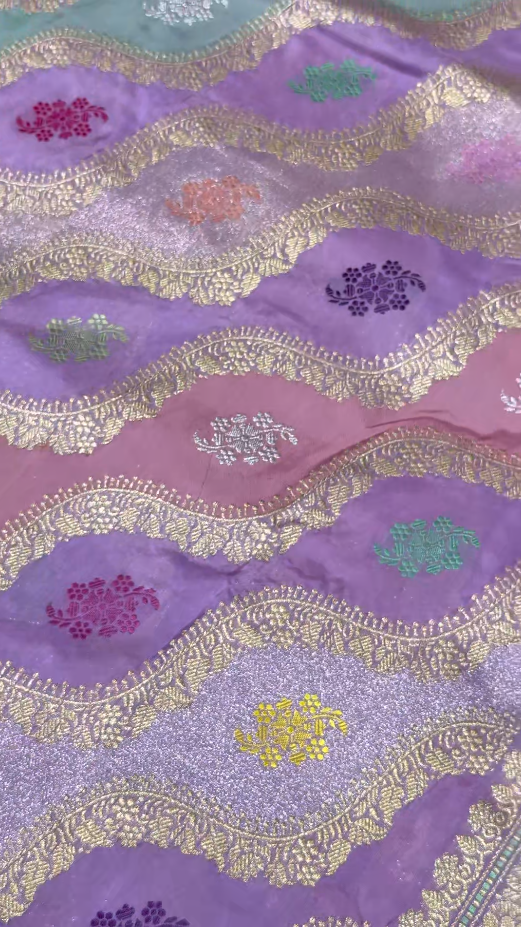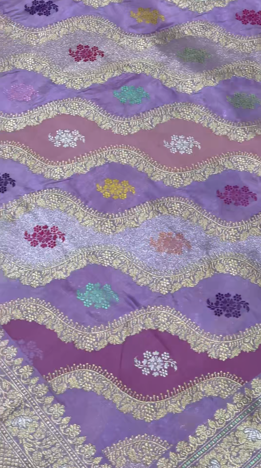 Rangkaat Kadhuwa Banarasi Silk Saree with Kaduwa Rangakaat meenakari buttas and Diagonal Zari Stripes | SILK MARK CERTIFIED