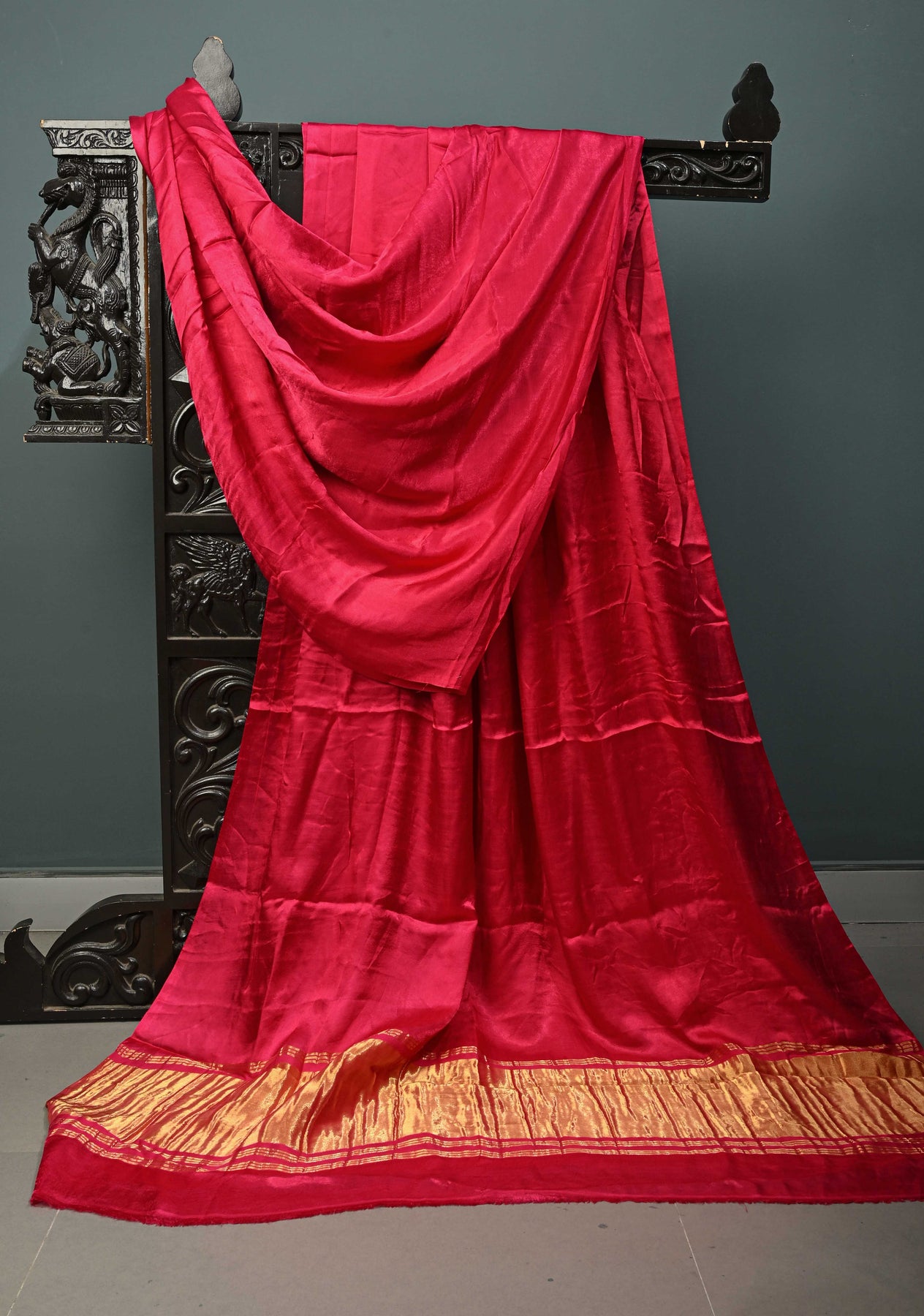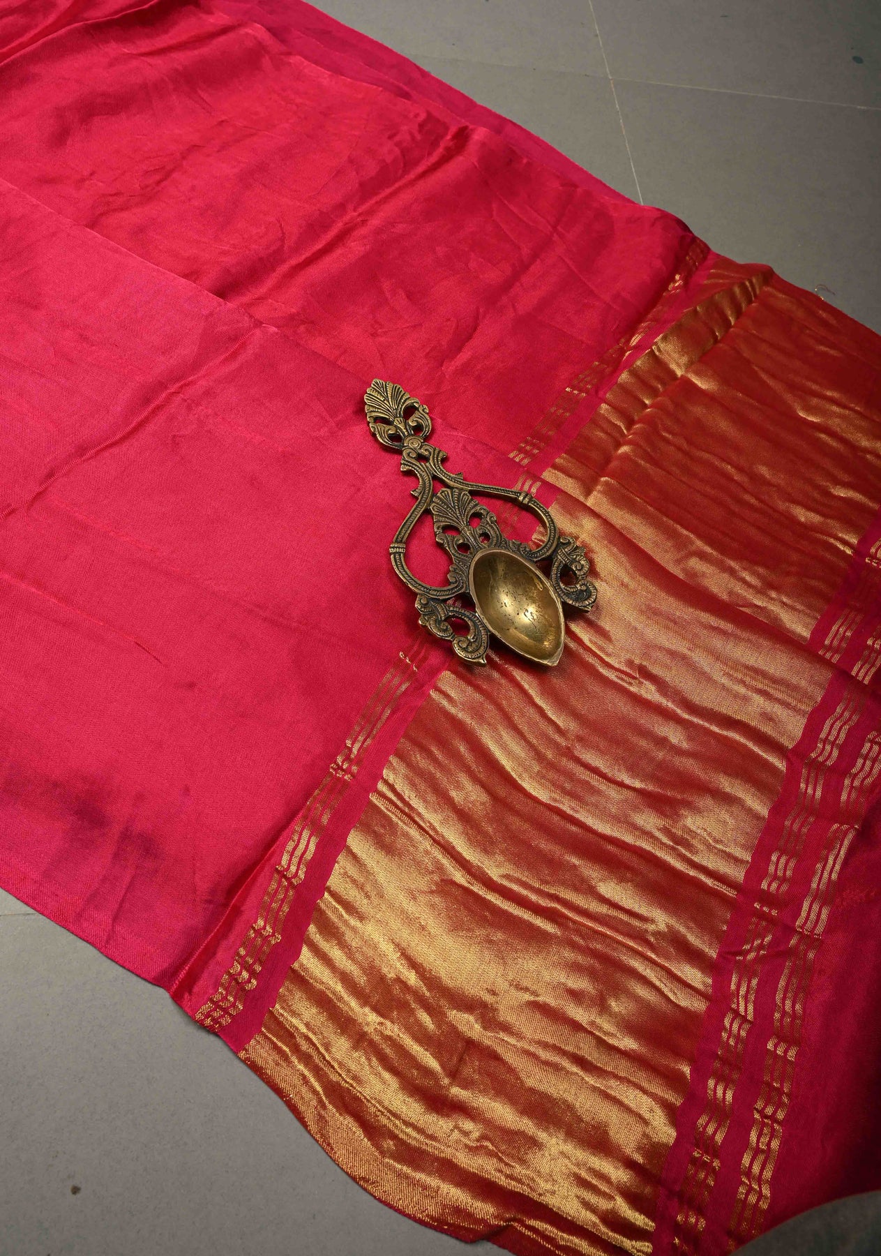 Bring a blend of elegance and contemporary charm to your wardrobe with this Rani Pink Modal Silk Saree. Crafted from soft and flowing modal silk, the saree offers a lightweight, comfortable drape while maintaining a sheen.