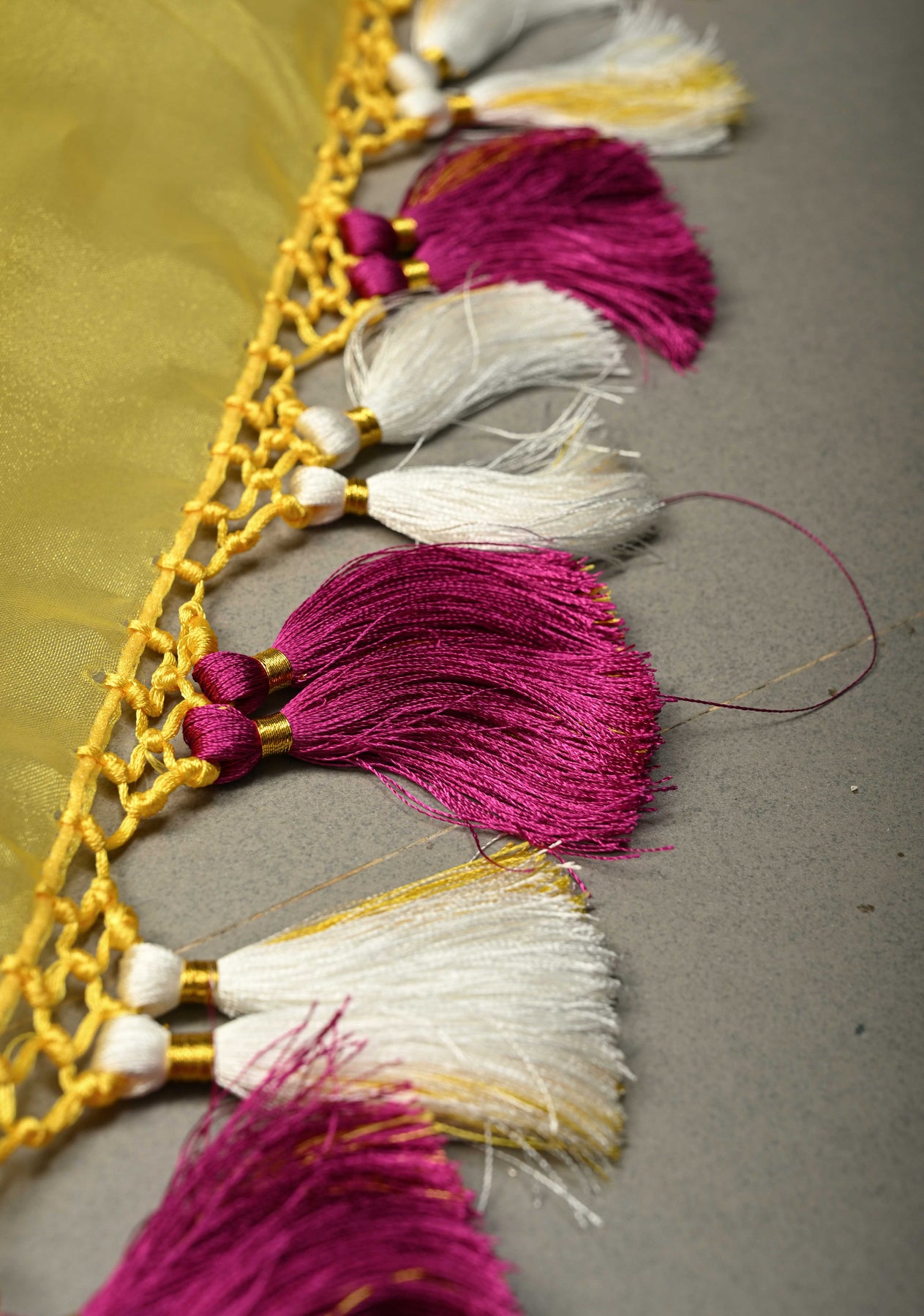 Note: This saree comes ready to wear with falls, pico and tassels done.