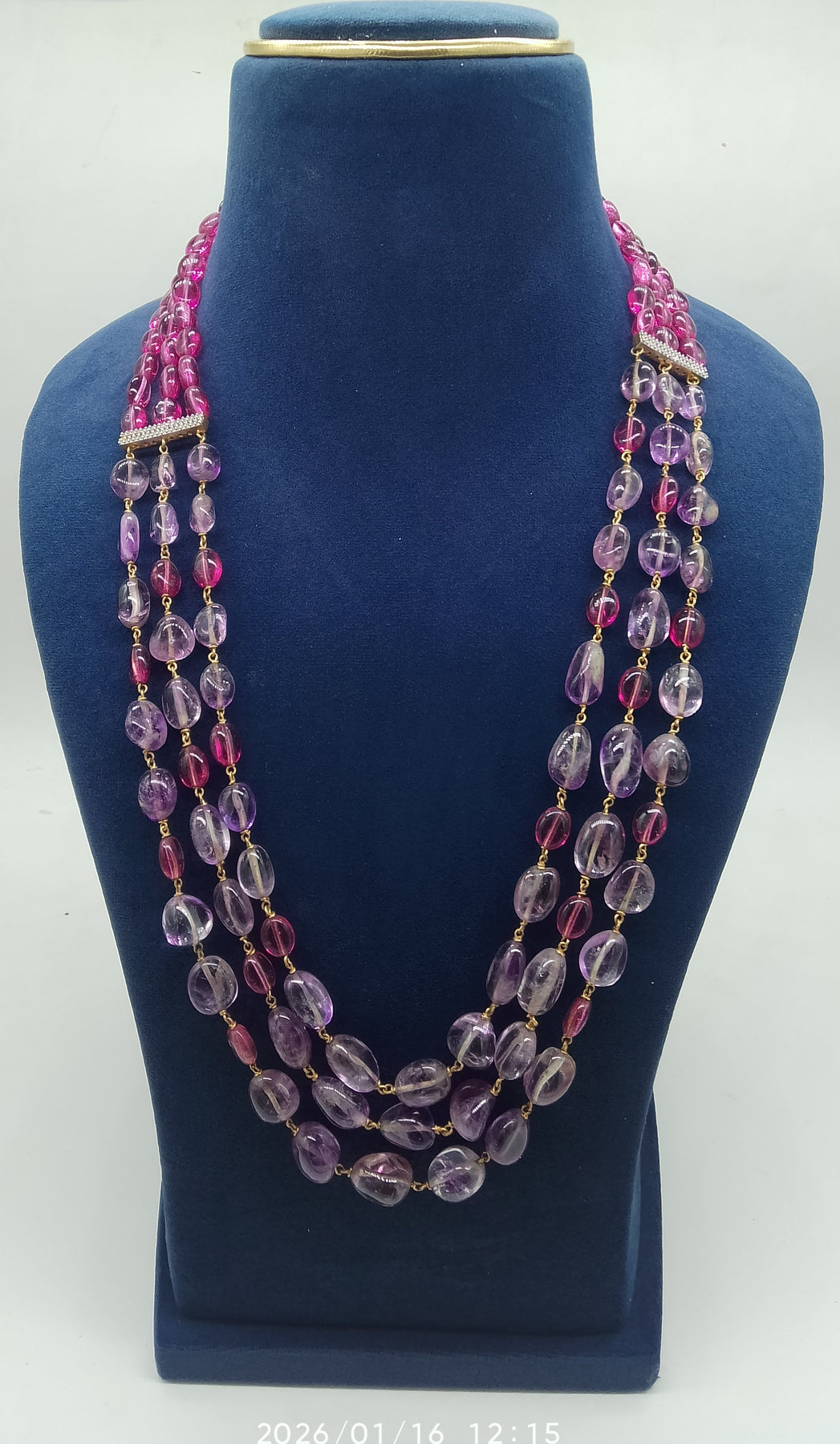 Three-Layered Amethyst and Purple Pearl Statement Necklace