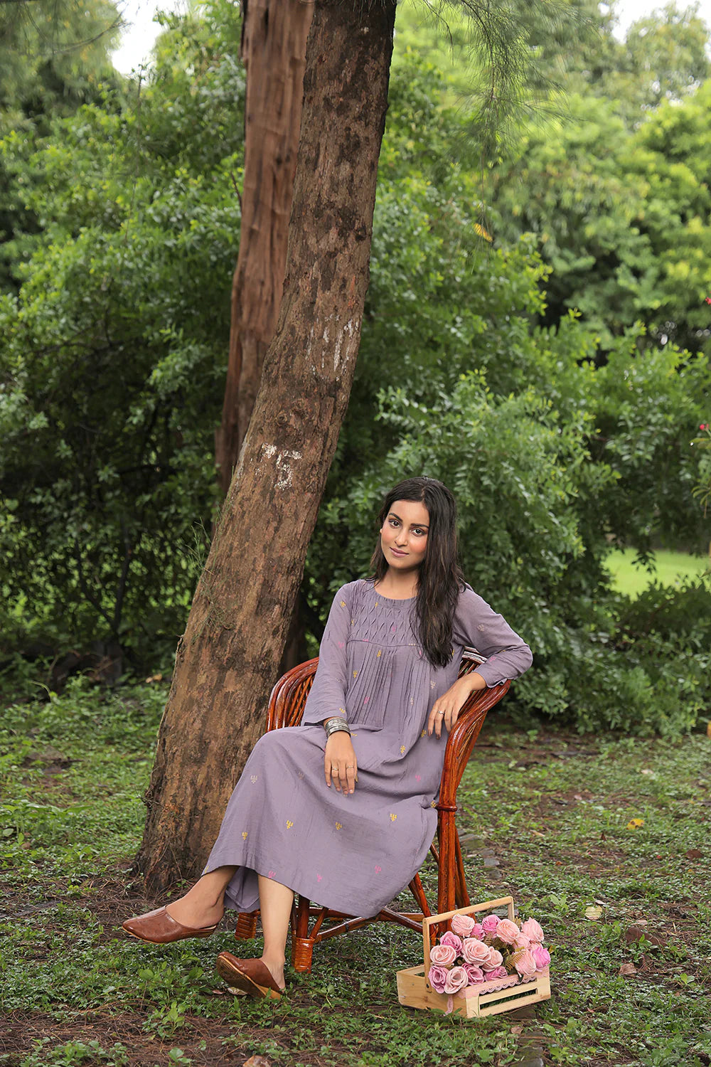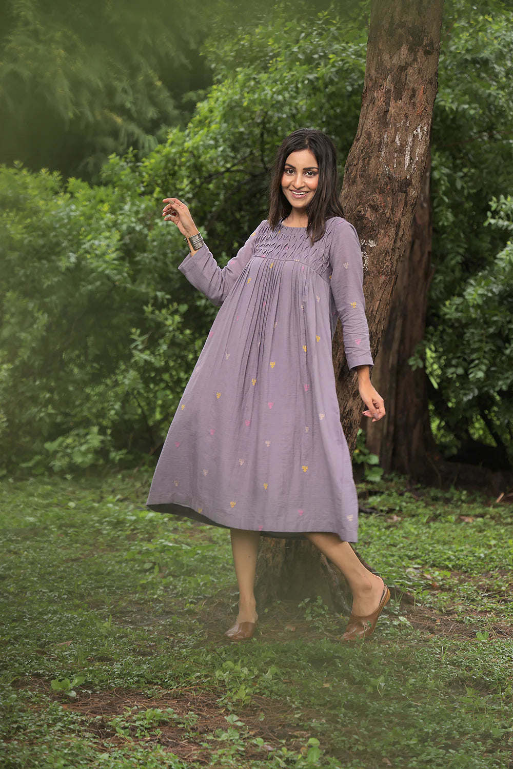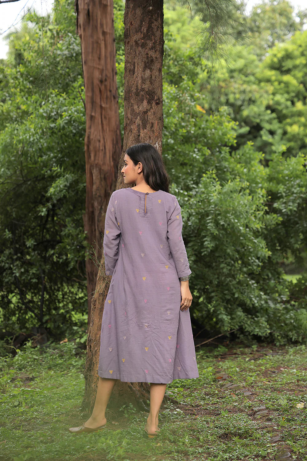 Embrace understated elegance with our Grey Jamdani dress, featuring intricate Trishul motifs woven into handwoven cotton fabric. This lined dress offers a perfect blend of comfort and style, making it ideal for both casual and semi-formal occasions. The subtle grey hue and timeless design ensure you'll make a sophisticated statement with ease.