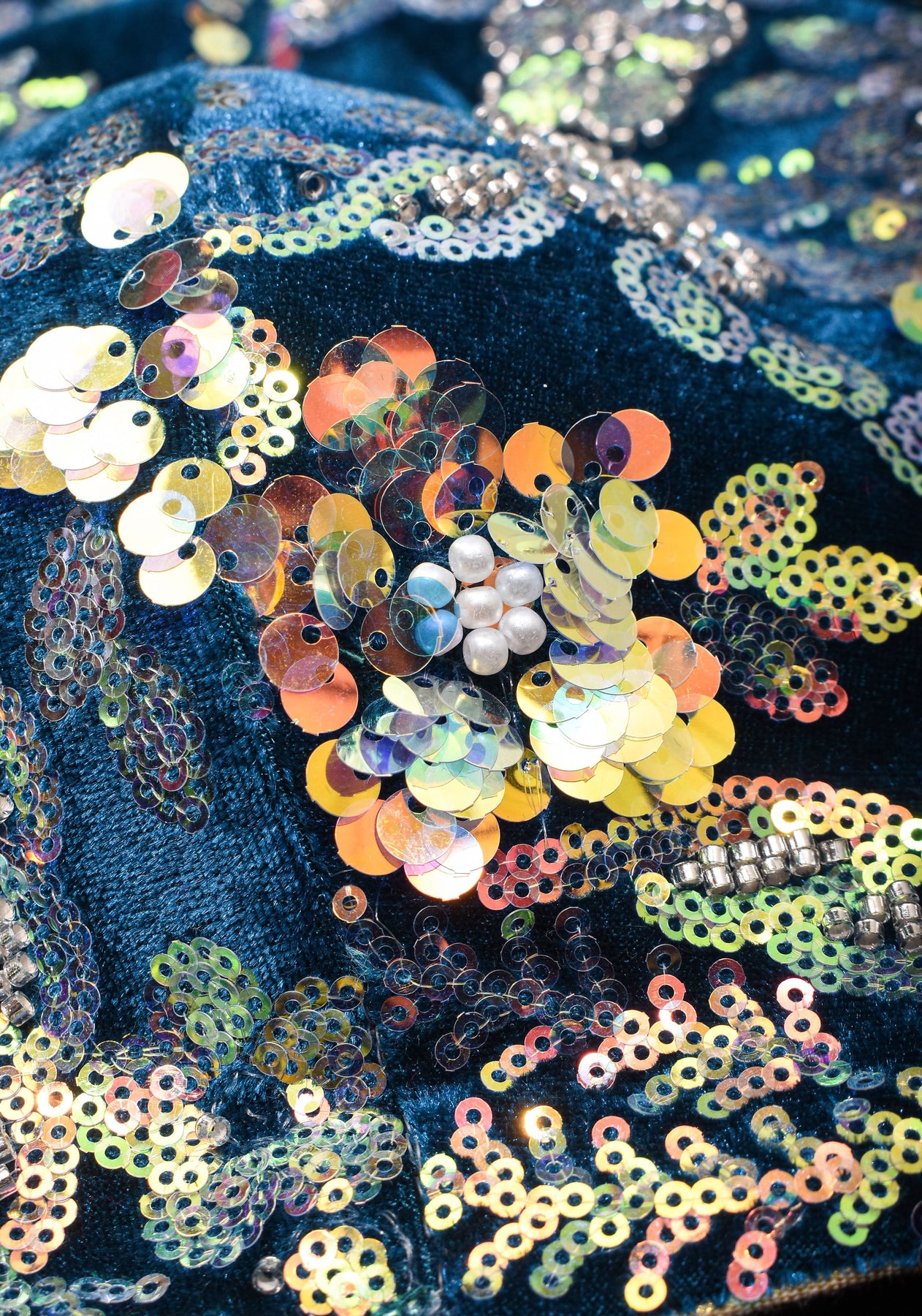 Get ready to turn heads in this Teal Velvet 3D sequin arch back tie blouse! With its multicolor danglers in back and sleeve, it's a one-of-a-kind piece that will make you stand out from the crowd. And the best part? It's Made to Order, just for you. Don't settle for basic, add some fun and flair to your wardrobe with this top!