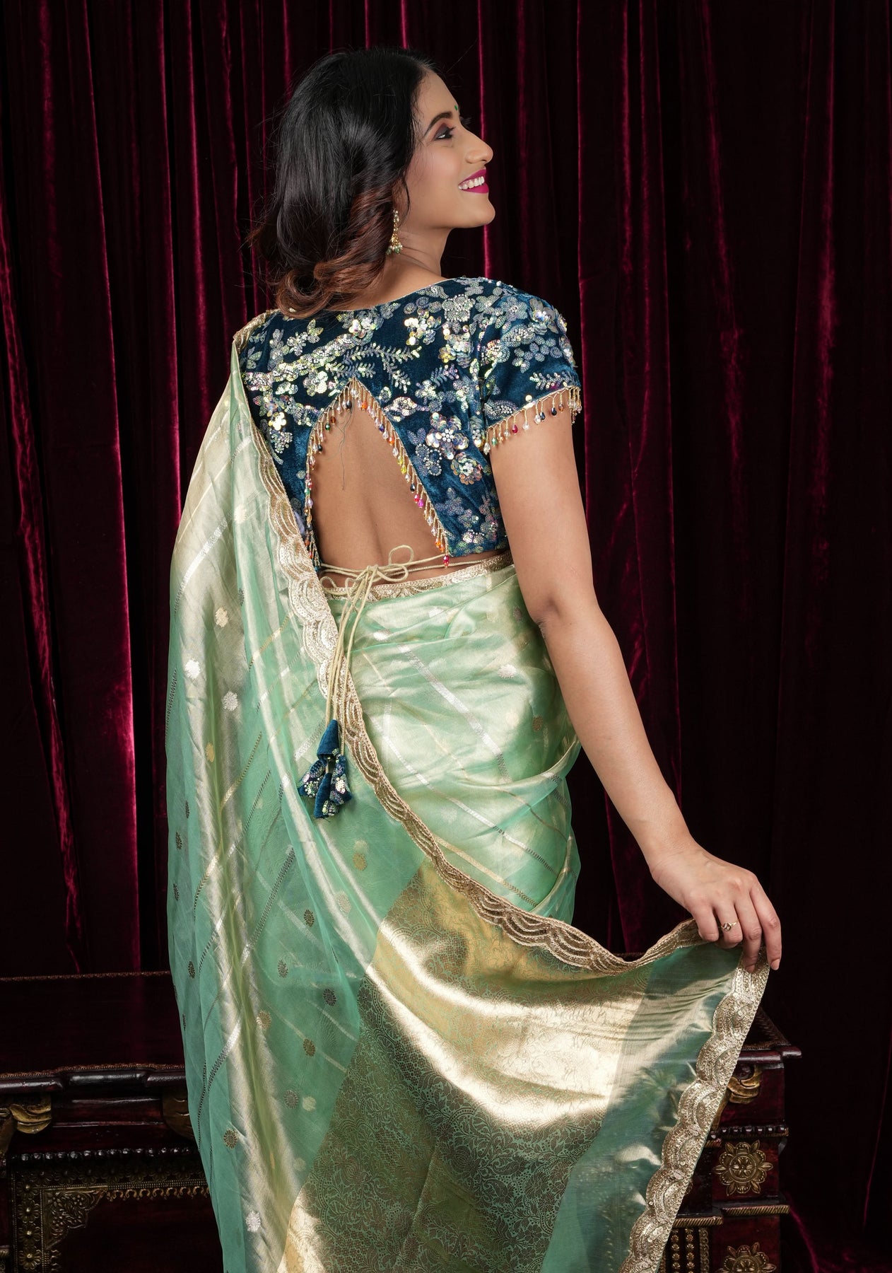 Note: This blouse will be tailor-made as per the standard size chosen with standard proportions for that size. If you need custom measurements, please mention in the order notes or reach out to us via email at hello@shobitam.com or Whatsapp us using the Green Whatsapp widget on the bottom right.