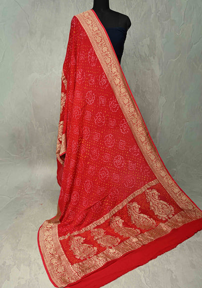 Red Sarkam Bandhej Georgette Silk Dupatta with zari Border