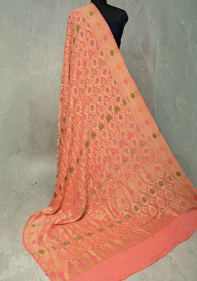 Dupatta - Peach Bandhej Banarasi Silk Georgette Dupatta with Meenakari Floral Motifs and Jaal | SILK MARK CERTIFIED