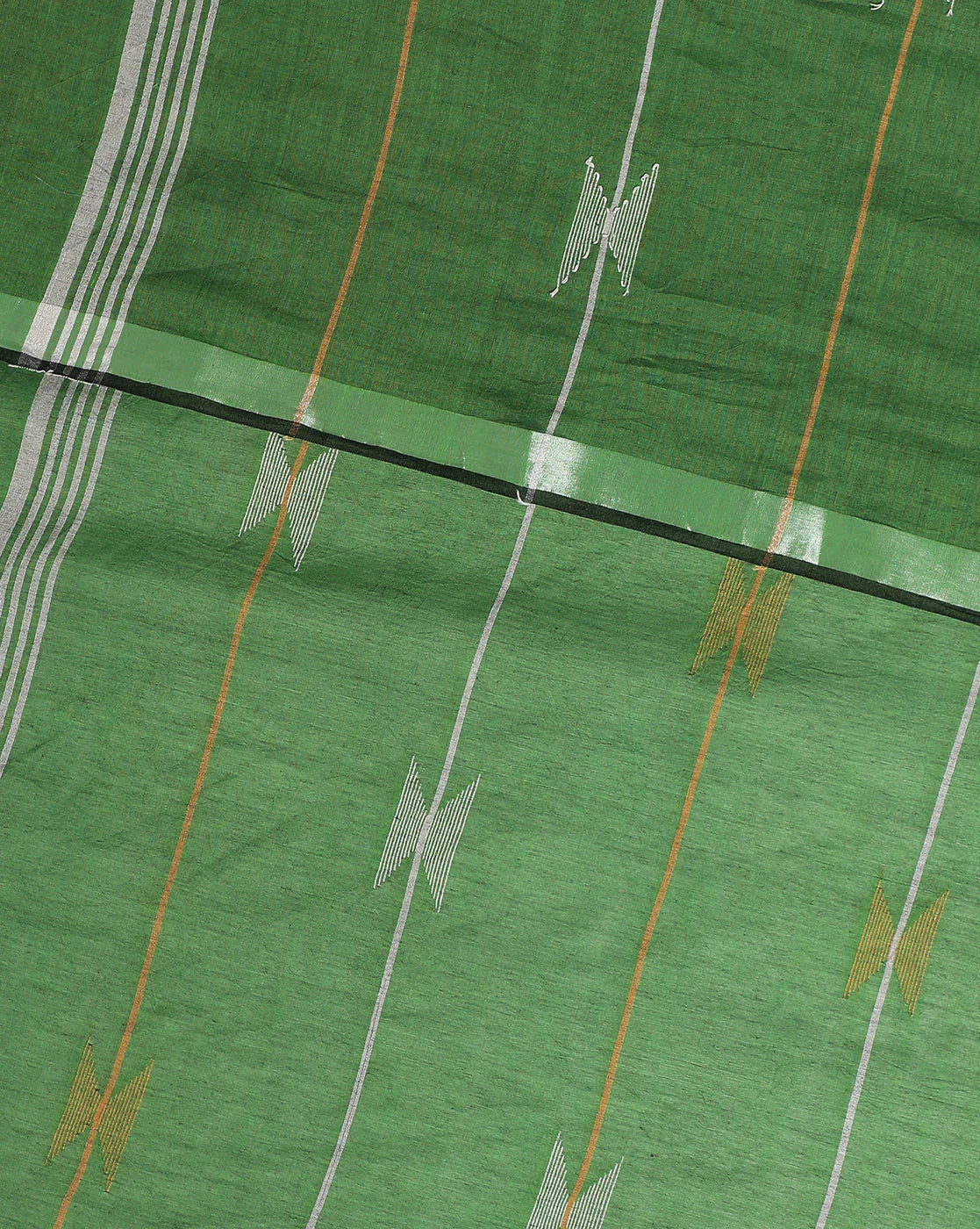 This Purple-Green Tie-Dye Jamdani Cotton Saree is a vibrant expression of traditional artistry blended with modern design. Handwoven from soft, breathable cotton, it features delicate Jamdani motifs beautifully accentuated by an artistic purple and green tie-dye pattern. The fusion of colors adds a lively yet elegant touch, while the lightweight fabric ensures a comfortable and graceful drape. Perfect for festive occasions, cultural events, or casual gatherings, this saree is a true symbol of handcrafted charm and contemporary style.