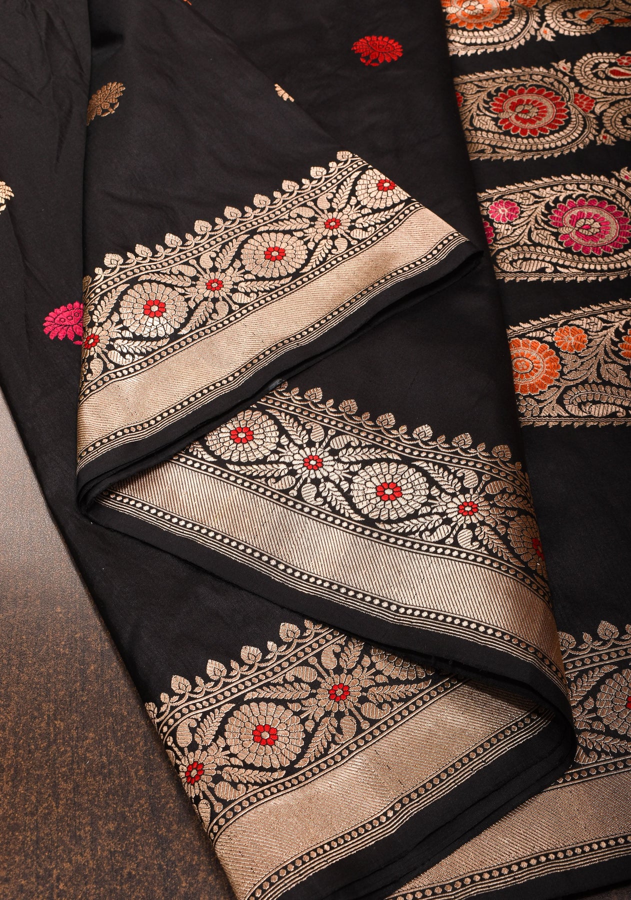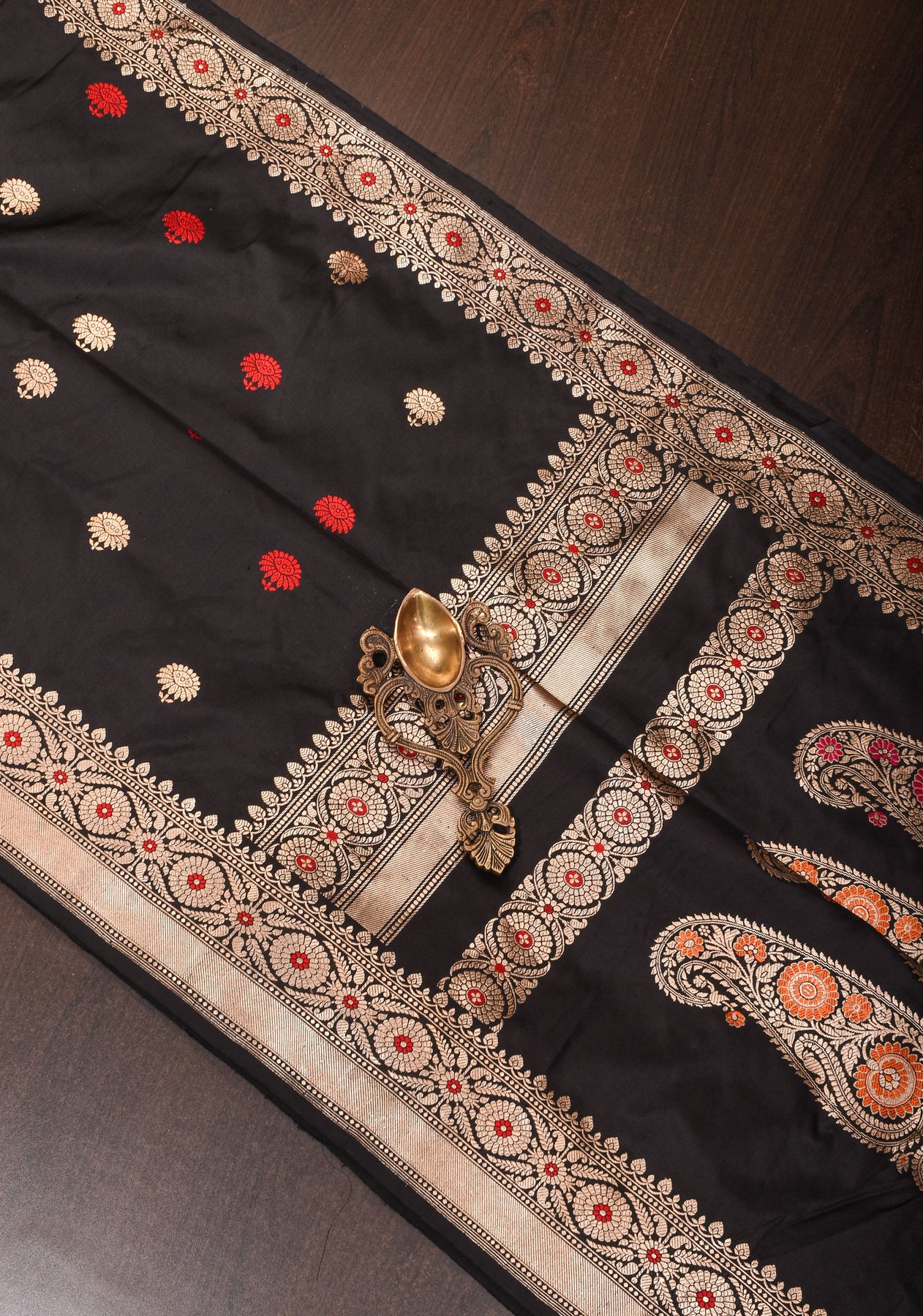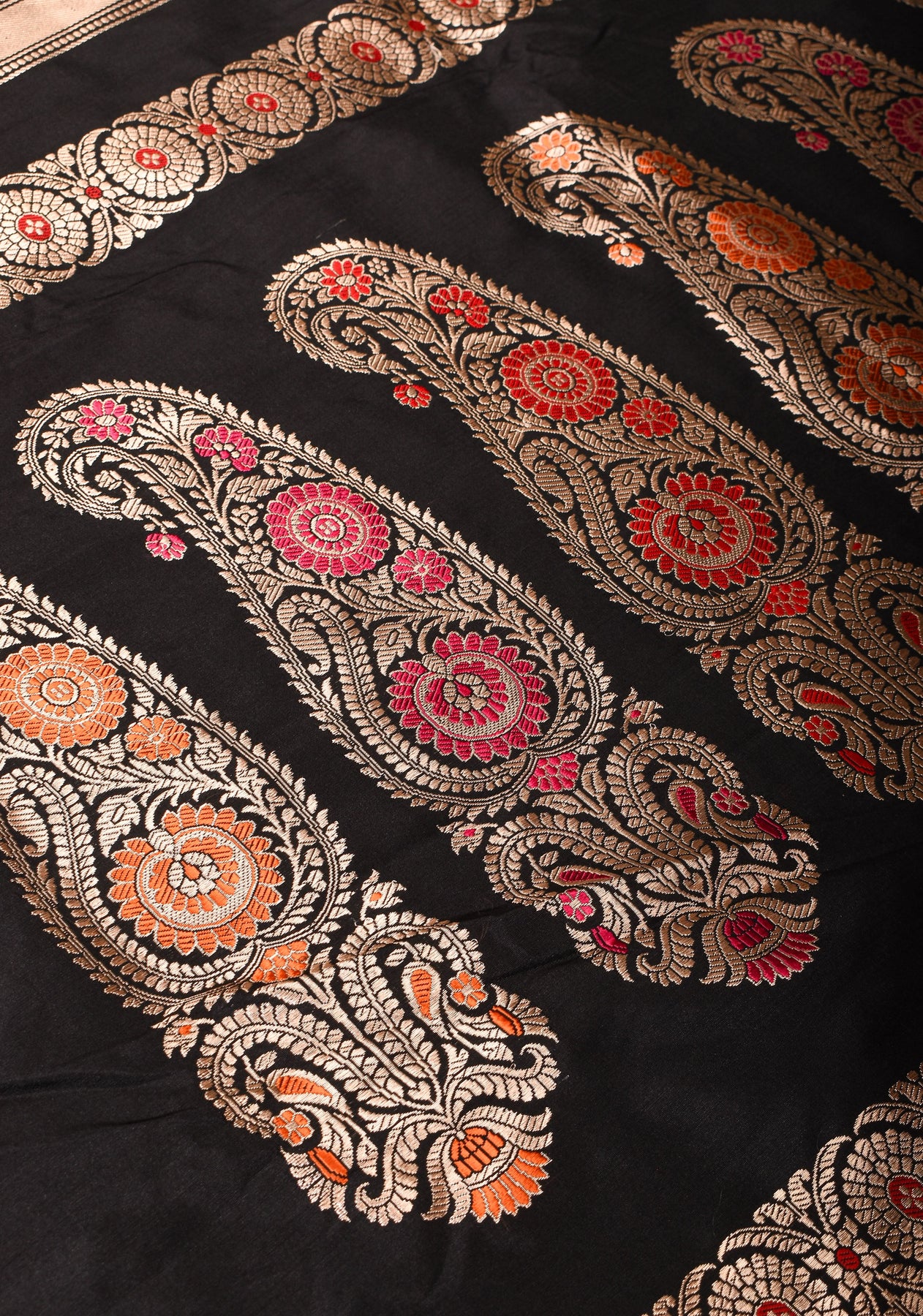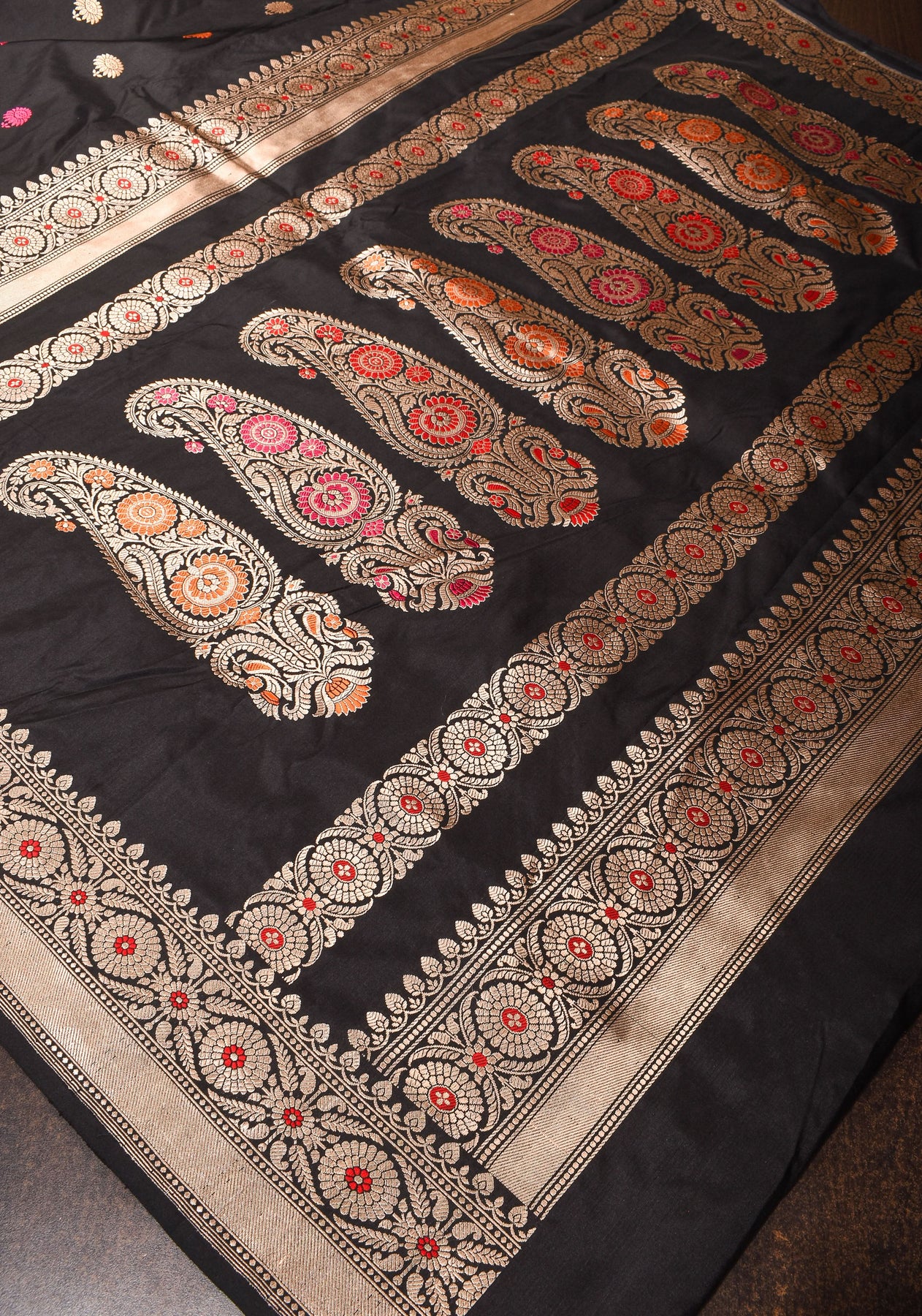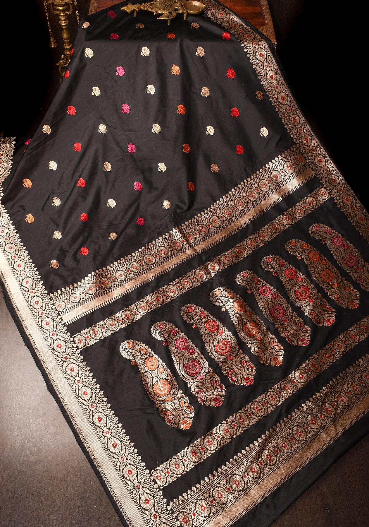 Banarasi Baluchari pure Katan silk saree with exquisite meenakari work in black | SILK MARK CERTIFIED | Shobitam