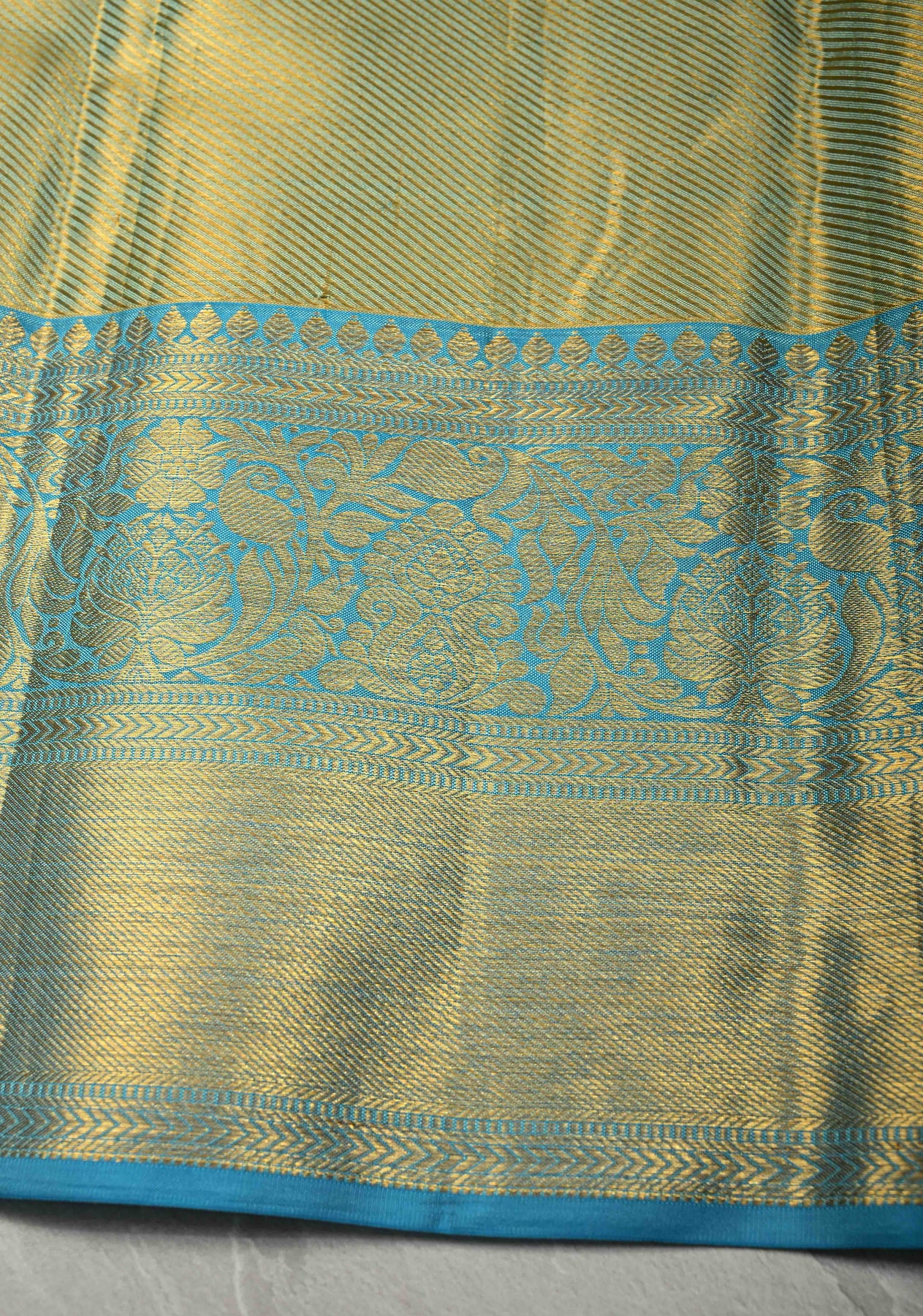 Beige Pure Kanjivaram Tissue Silk Saree with Meenakari Floral Brocade and Zari Border | SILK MARK CERTIFIED