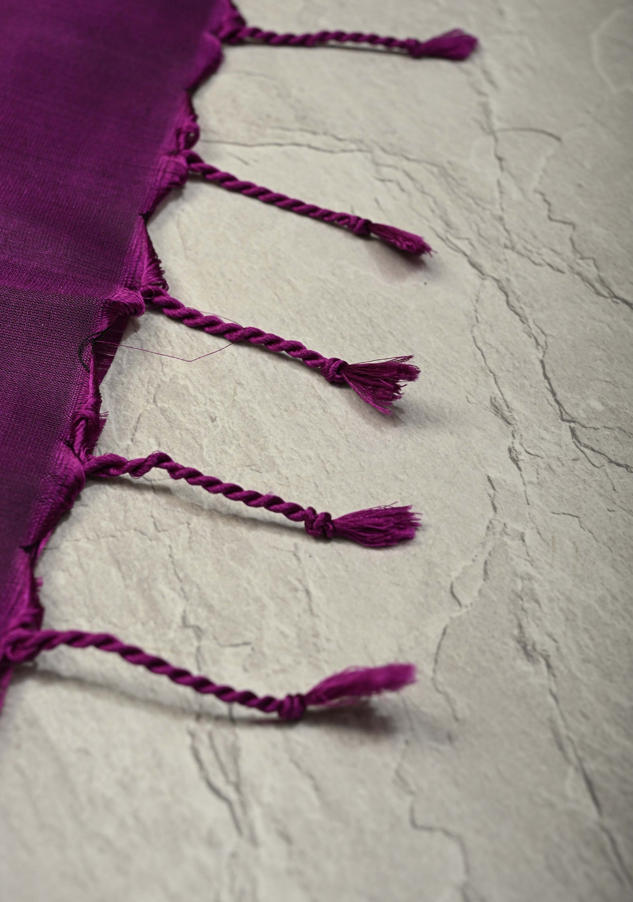 This saree is ready to wear with fall and pico done. Handmade silk tassels as seen in the pic adorn the pallu and add more grace to it. An unstitched blouse fabric is included.