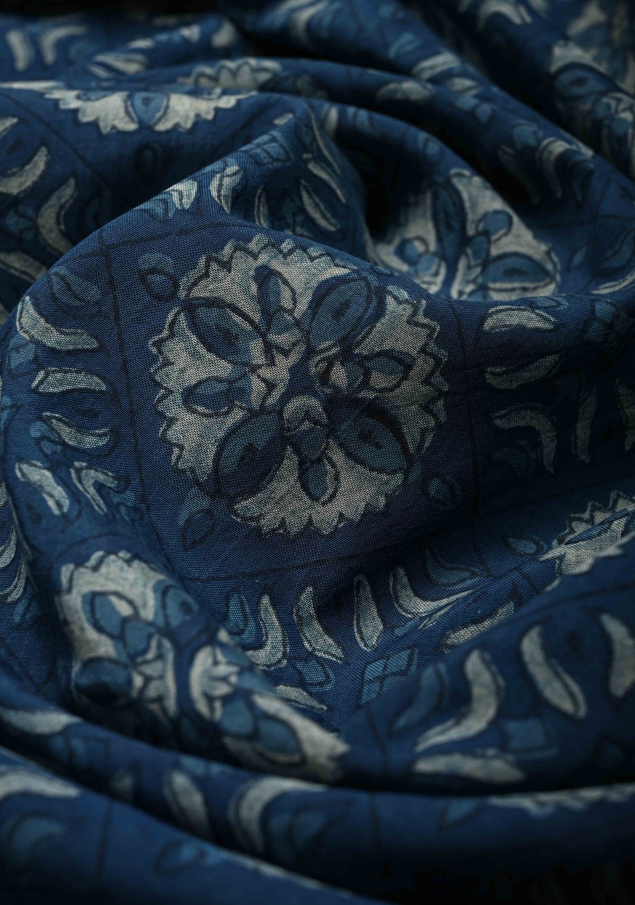 This Indigo Mangalagiri Cotton Saree is a beautiful expression of traditional artistry and timeless design. It features floral Bagru hand block prints that add a soft, artistic charm to the indigo base. The cotton fabric ensures breathability, comfort, and a subtle natural sheen. Intricately finished with a classic Nizam zari border, it brings a touch of regal elegance. Lightweight and graceful, it drapes effortlessly for long hours of wear. Perfect for festive occasions, cultural gatherings, and elegant day events, this saree blends heritage with contemporary appeal