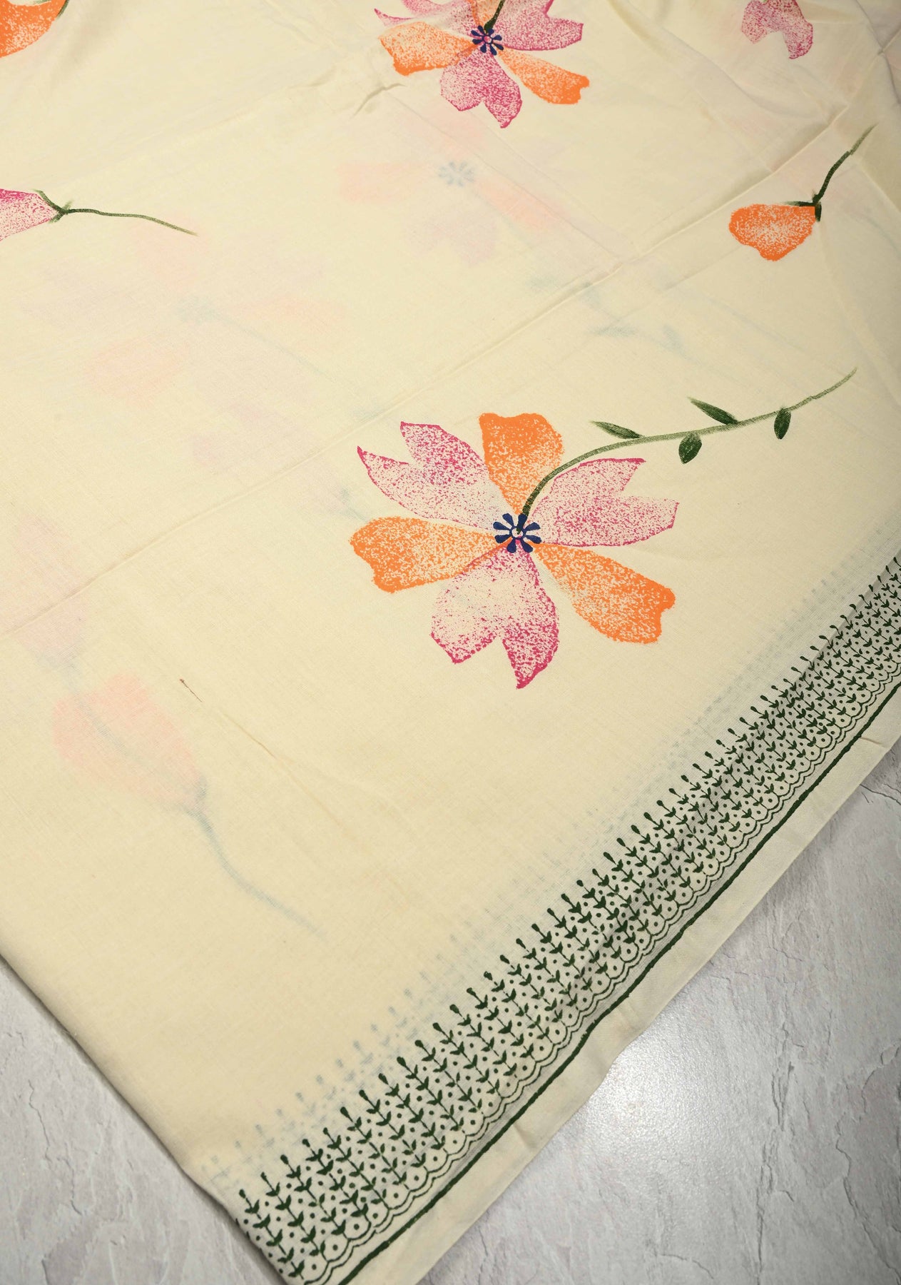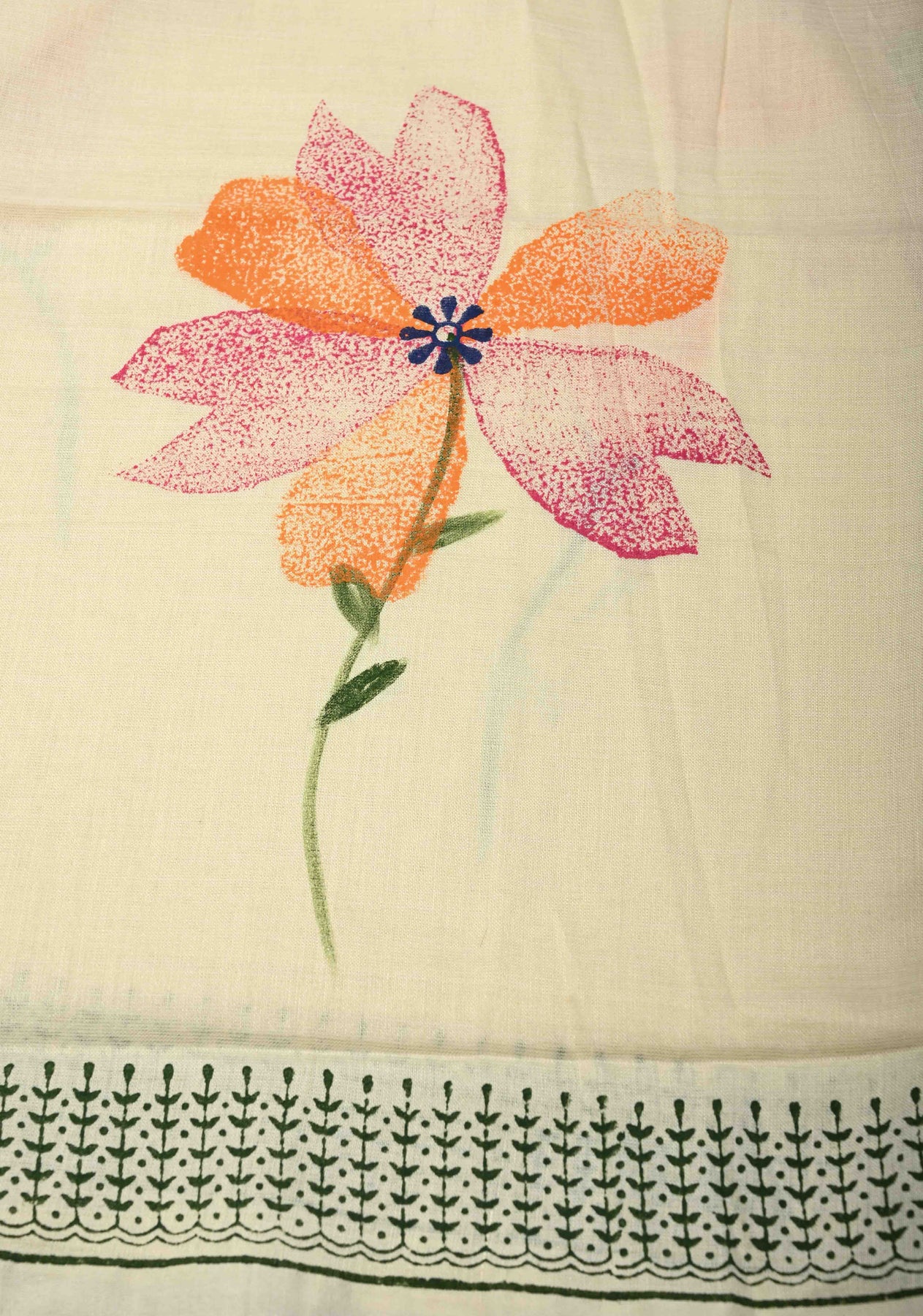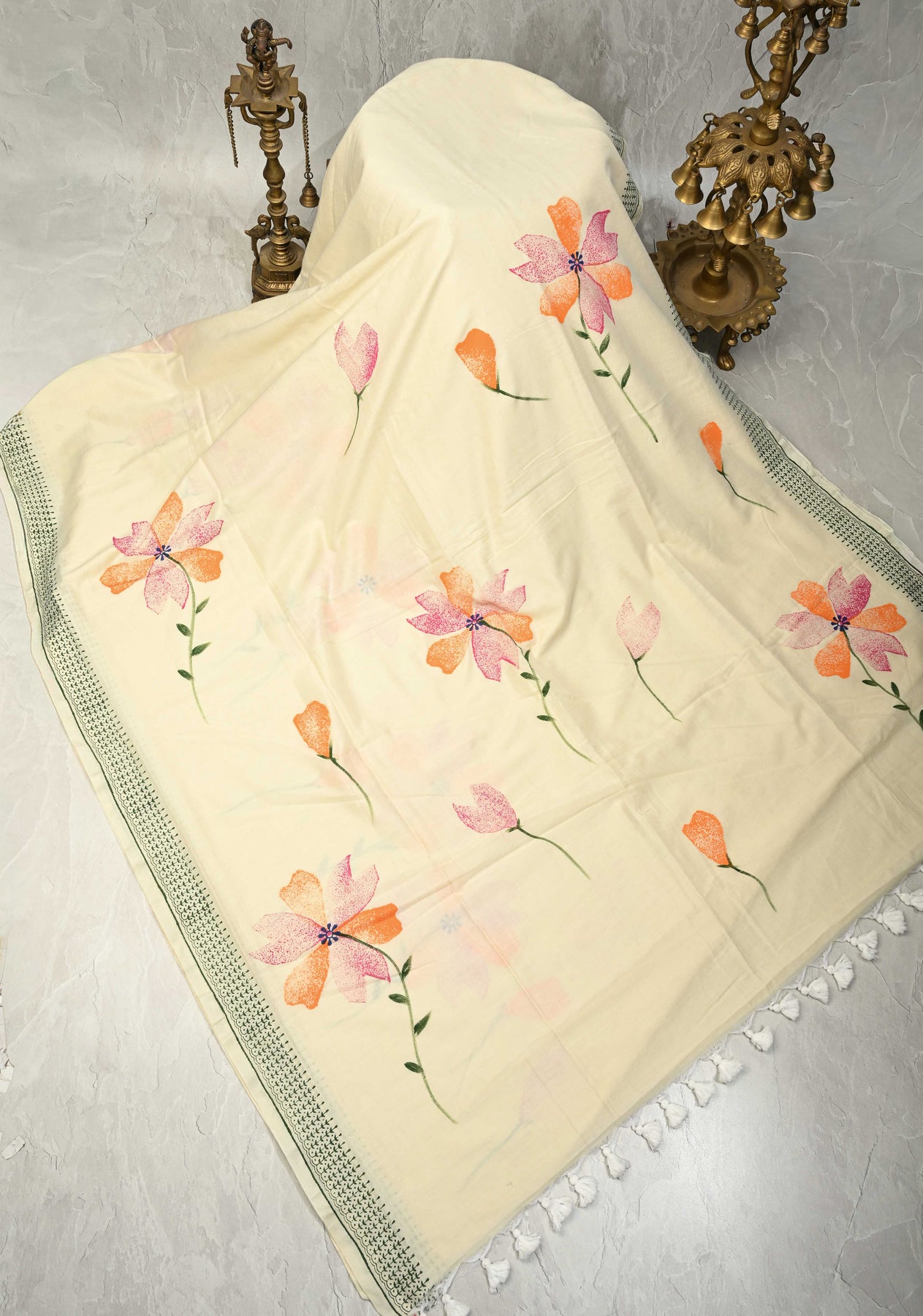 Ivory Uppada Handloom Cotton Saree with Hand painted Floral Design and Border