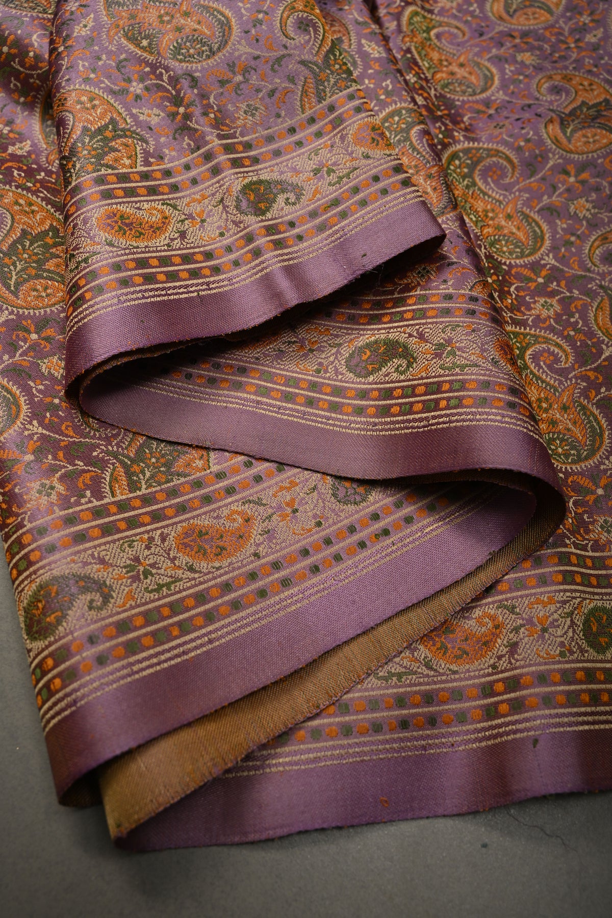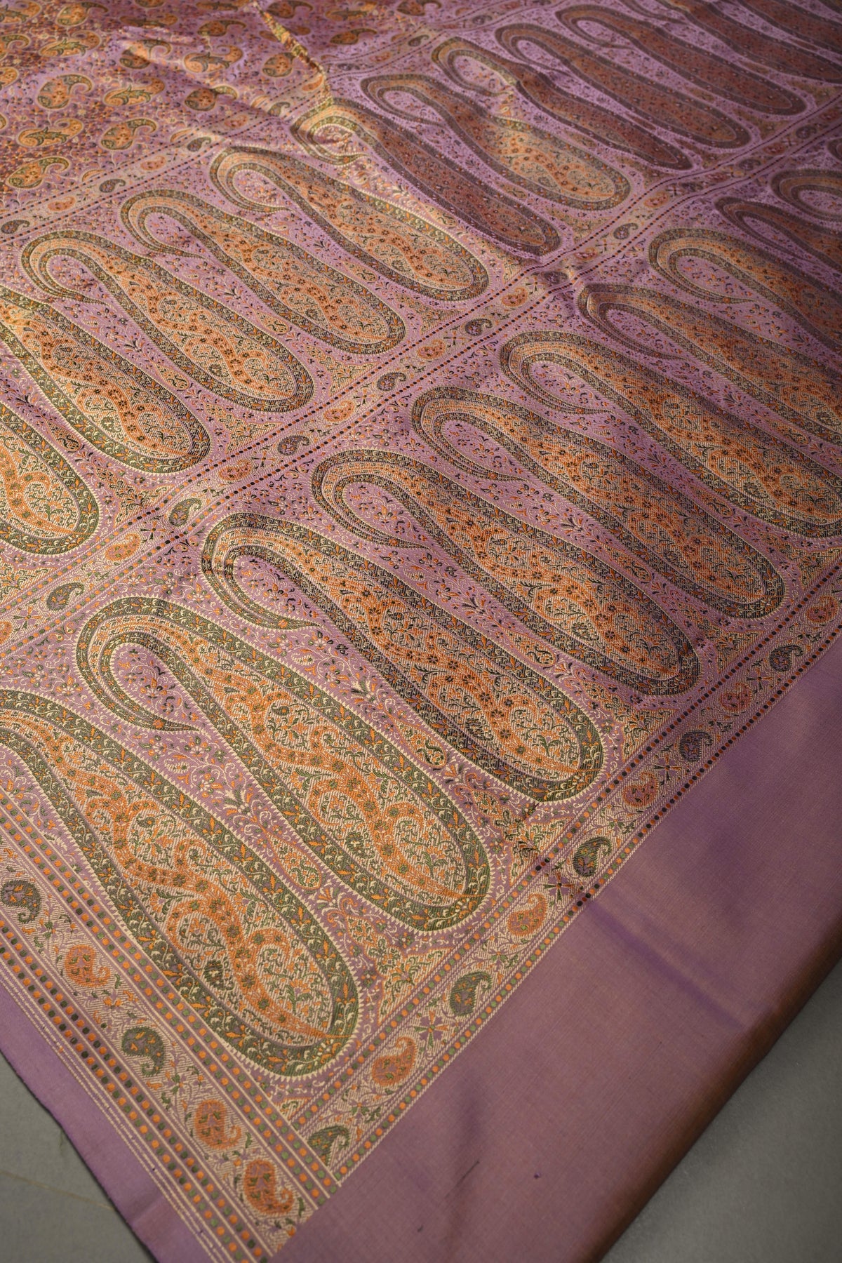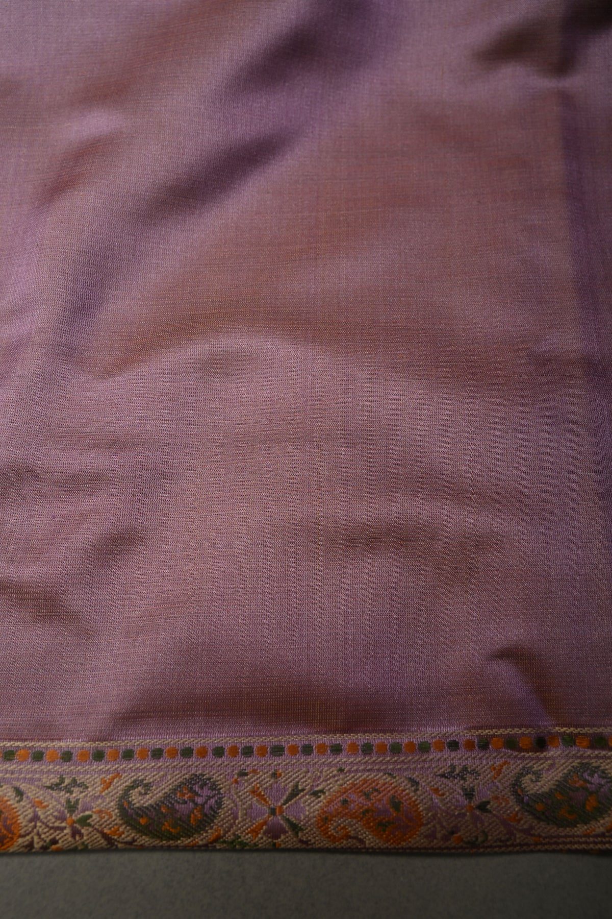 The Mauve Tanchoi Banarasi Silk Saree in Pure Silk Satin with Meenakari Paisley Brocade and Border is a timeless expression of elegance and craftsmanship from Varanasi, the historic heart of Banarasi weaving. Crafted in pure silk satin, this saree drapes with a fluid, graceful fall and a soft natural sheen that enhances its regal mauve hue. The body is adorned with intricate Tanchoi weaving, featuring exquisite meenakari paisley brocade motifs that add delicate bursts of color and artistic depth to the fabric. The richly woven border complements the design with traditional detailing, creating a harmonious blend of sophistication and heritage. Perfect for weddings, festive occasions, and grand celebrations, this saree embodies refined tradition while offering a statement of understated opulence