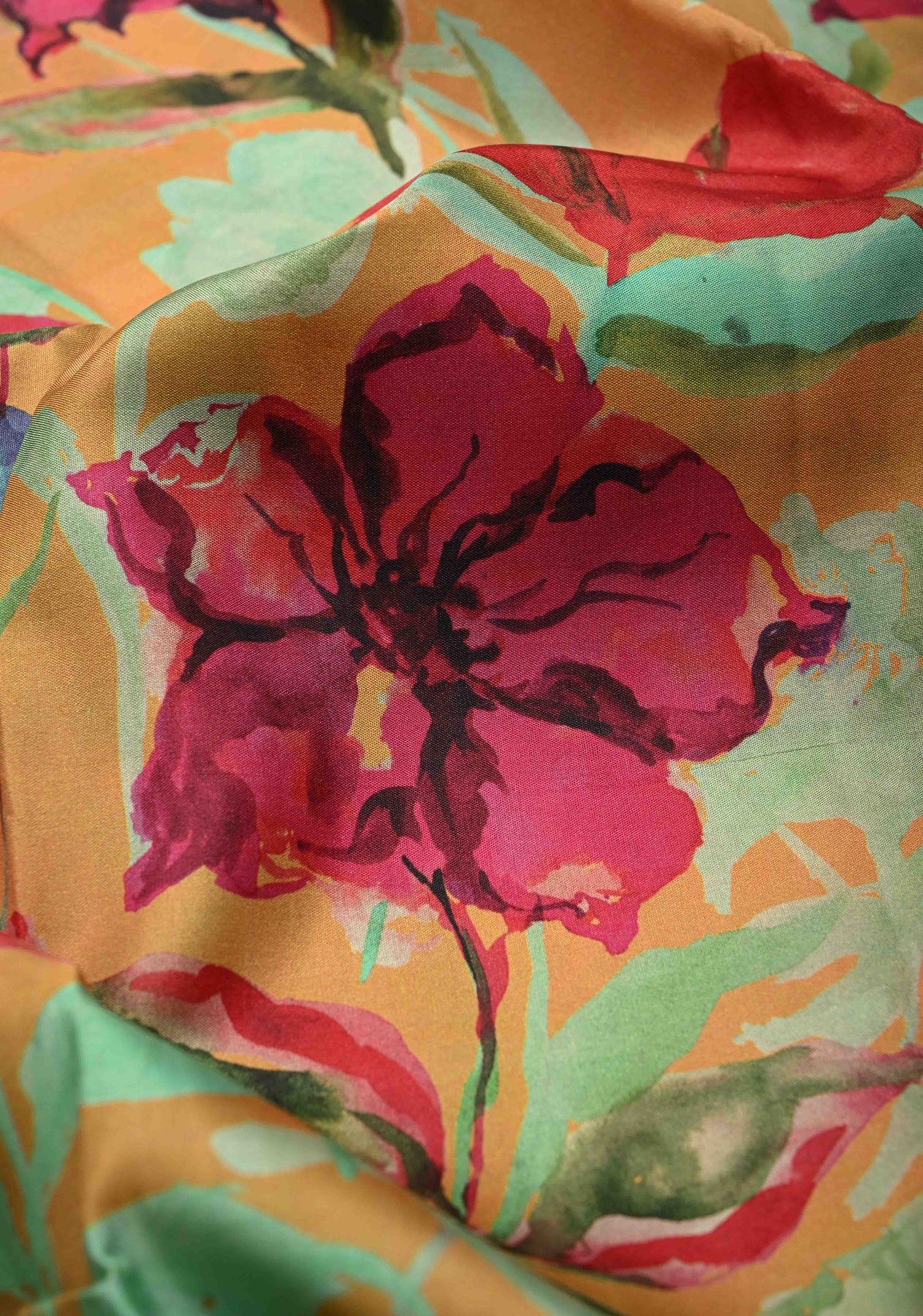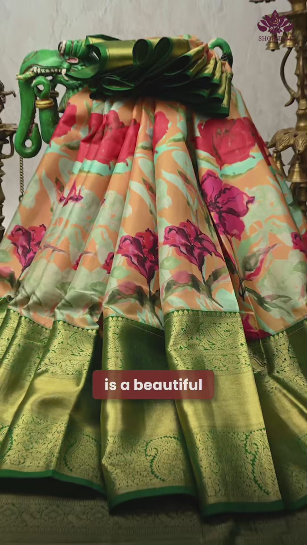 This elegant mint green pure Kanjivaram silk saree exudes timeless charm with a refreshing contemporary touch. Crafted from silk, it features delicate floral digital prints gracefully spread across the body, adding a soft and feminine appeal. The saree is beautifully enhanced by a rich green wide contrast zari border that lends depth and traditional grandeur, perfectly complementing the subtle mint hue. The lustrous silk texture and intricate zari detailing reflect classic South Indian craftsmanship, making this saree an ideal choice for weddings, festive celebrations, and special occasions where sophistication and heritage come together effortlessly.