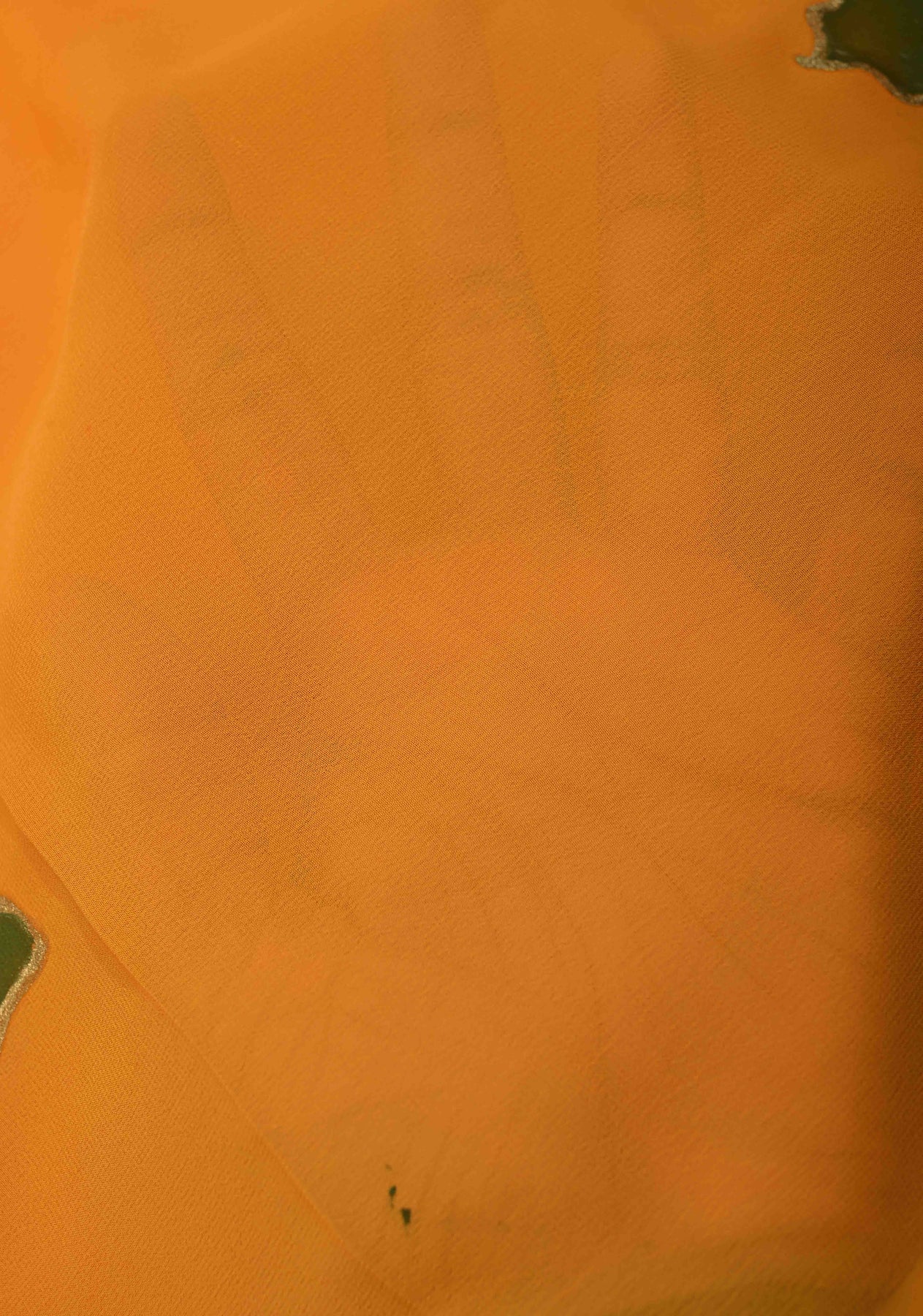 *Note: This is a handmade saree and there may be slight inconsistencies such as in it's weaving and painting. These are characteristic of handmade products and attest to their originality and are not considered as defects.