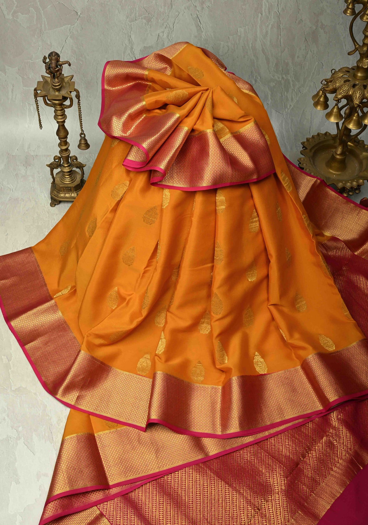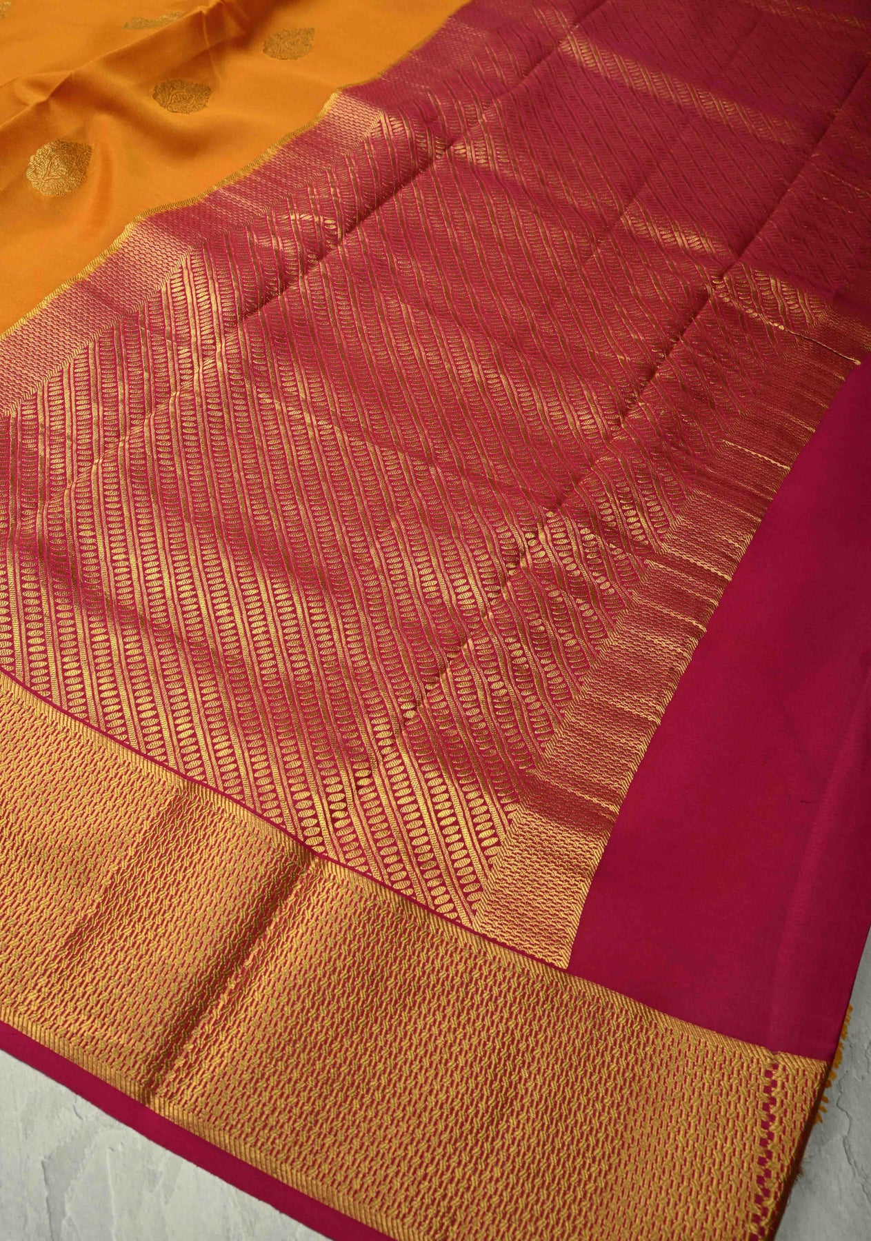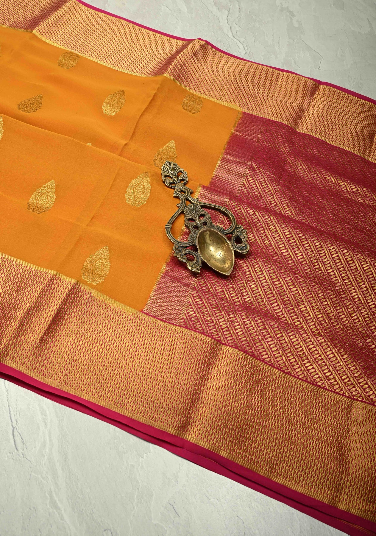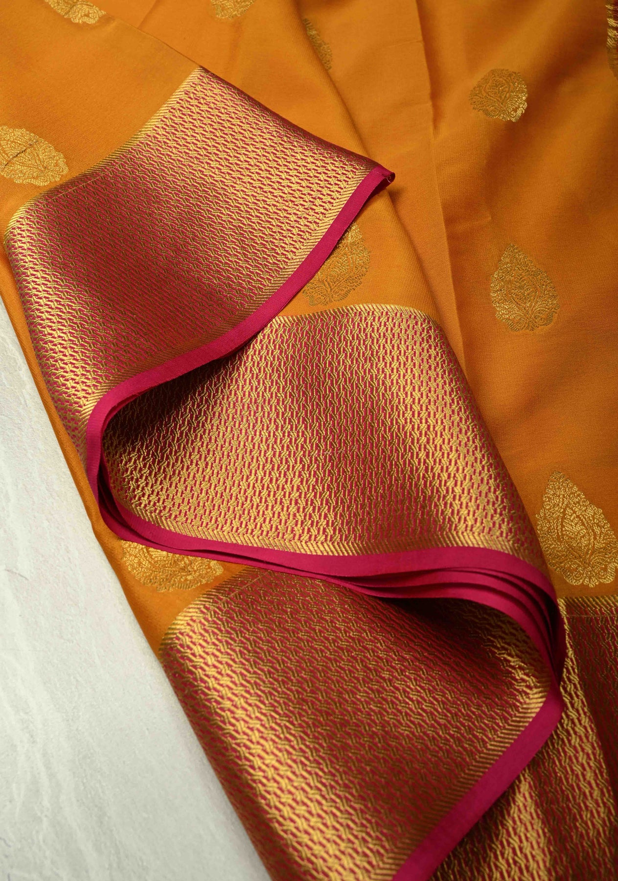 Musturd Yellow Mysore Silk Saree with Floral Zari Buttas and Contrast Zari Border| SILK MARK CERTIFIED