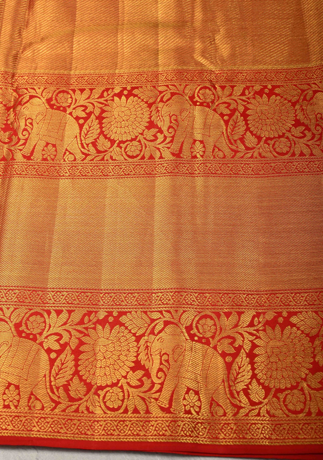 Radiate timeless grace in our Pista Green Pure Kanjivaram Tissue Silk Saree. This exquisite drape features a luminous metallic sheen, adorned with elegant diagonal stripes that elongate the silhouette. The masterpiece is defined by its magnificent wide zari border, showcasing intricate traditional motifs that exude royal grandeur. Handwoven from the finest silk, this lightweight yet opulent saree is perfect for weddings and high-profile festivities, offering a refreshing, sophisticated take on classic heritage luxury.