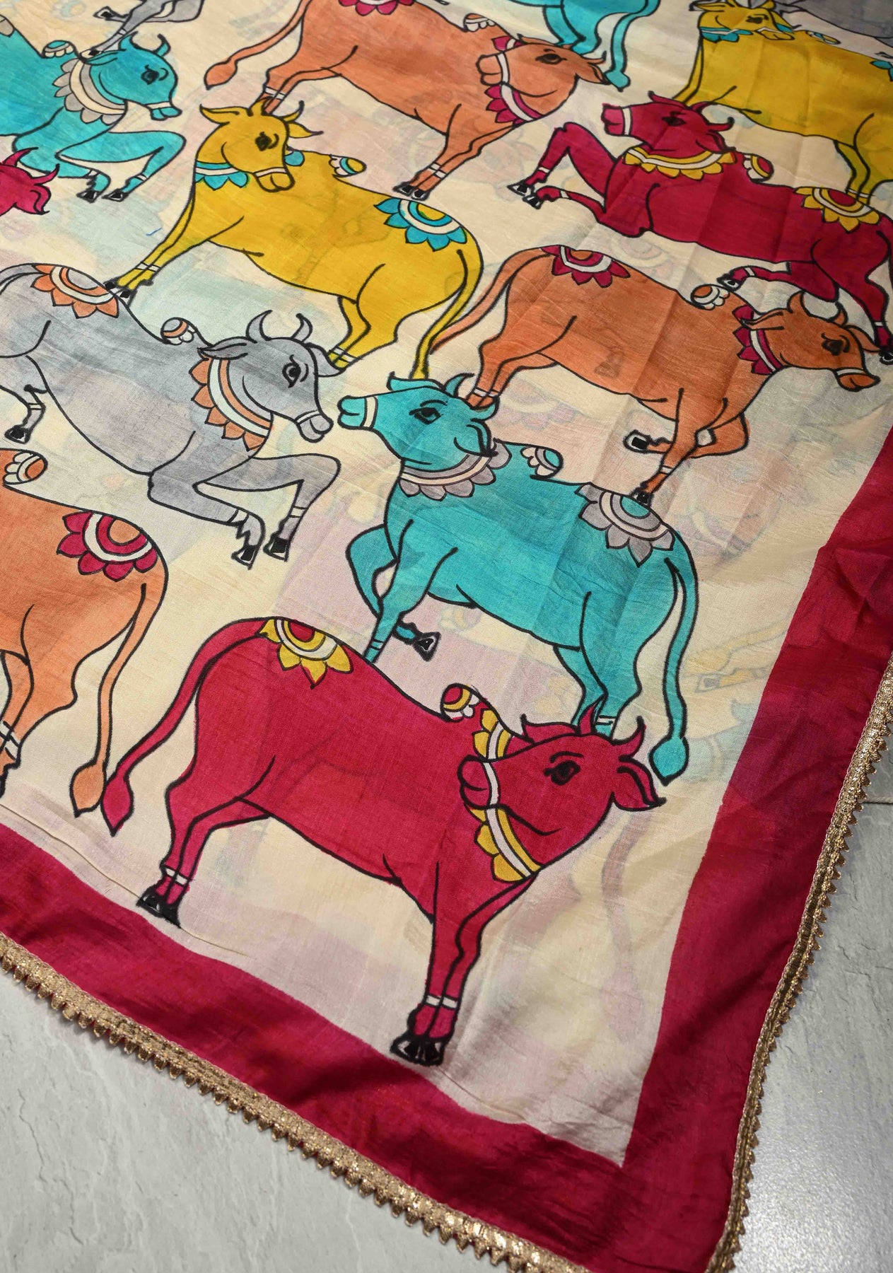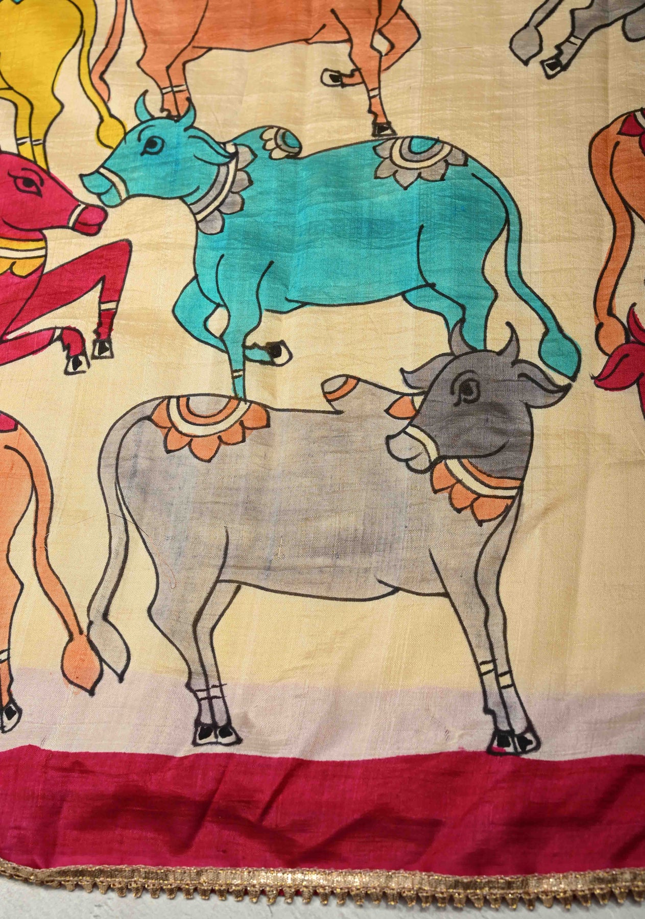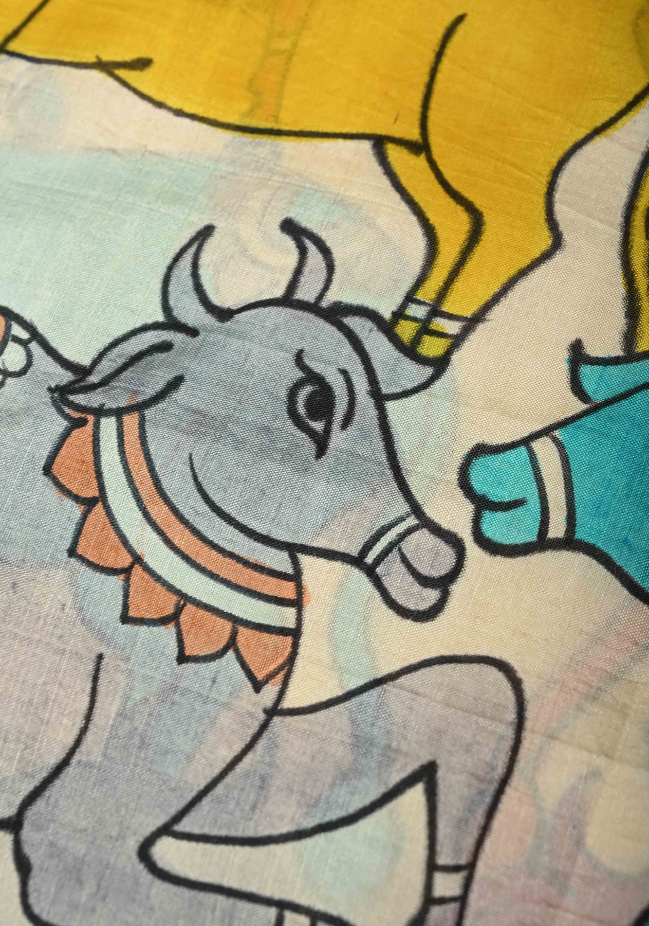 This stunning Yellow Pure Bishnupuri Silk Saree is a timeless piece that beautifully blends traditional artistry with elegant craftsmanship. Woven from Bishnupuri silk, known for its soft texture and graceful drape, the saree features a yellow hue that radiates warmth and charm. The highlight of this exquisite saree is the intricate Pichwai hand-painted artwork adorning the pallu, showcasing delicate motifs inspired by Lord Krishna’s life, often seen in traditional temple art. Complementing this artistic detailing is a shimmering gotta border, meticulously hand-applied to add a touch of festive sparkle. Ideal for special occasions, cultural events, or festive celebrations, this saree is a perfect confluence of heritage and sophistication, making it a treasured addition to any wardrobe