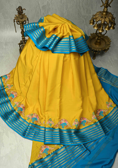 The pleats are permanently set, maintaining their crisp appearance throughout wear. The pallu is strategically attached at shoulder points, preventing it from sliding during movement. The overall length is standardized based on average heights, with customization options available for petite or tall wearers.