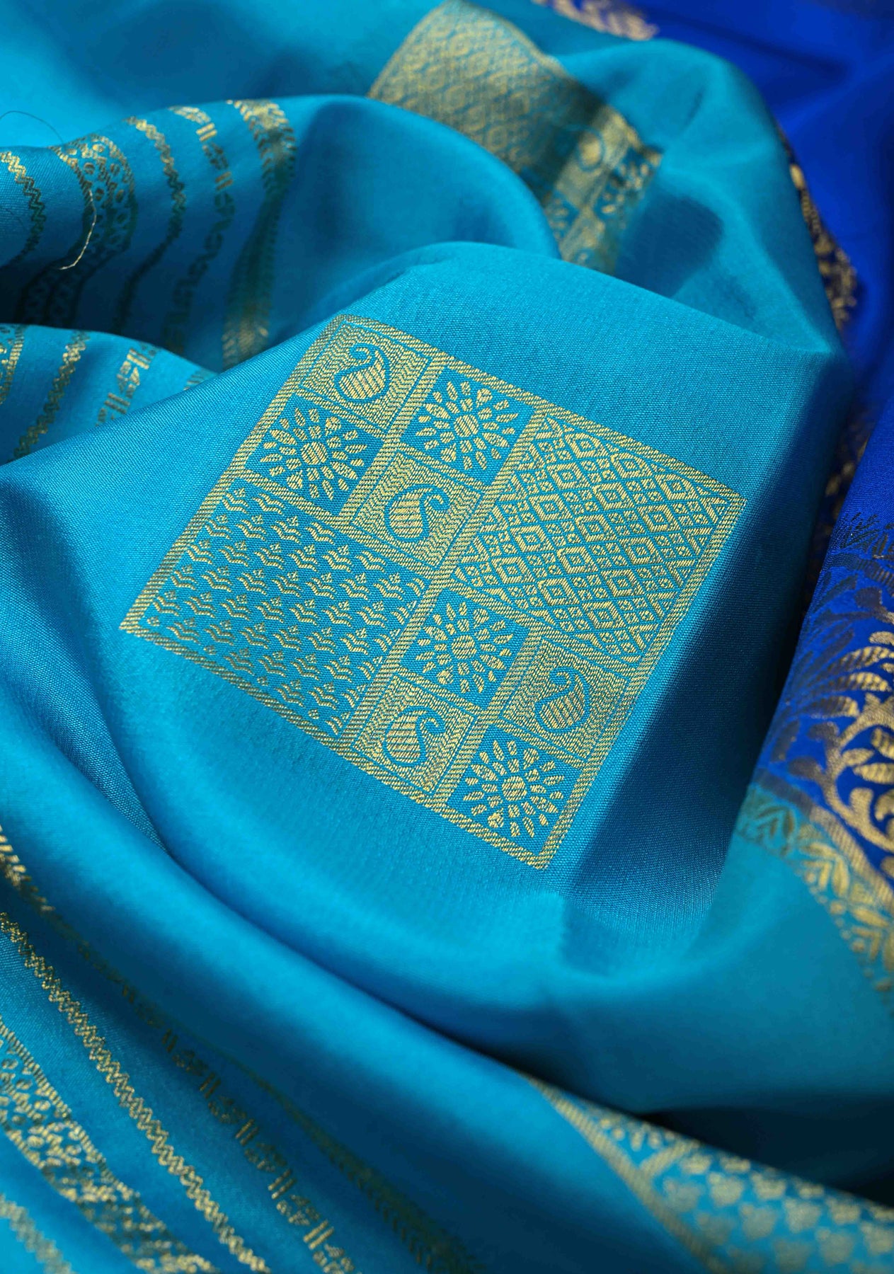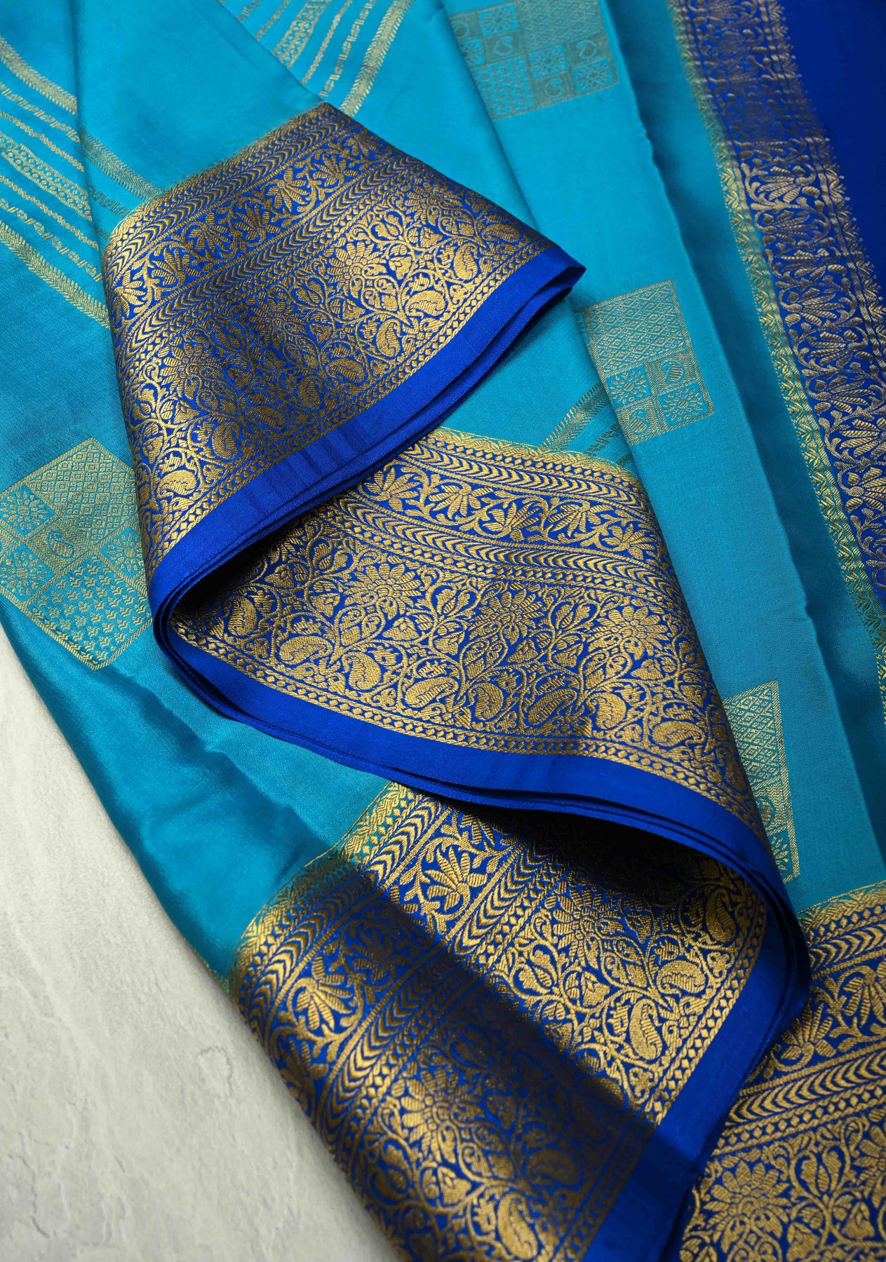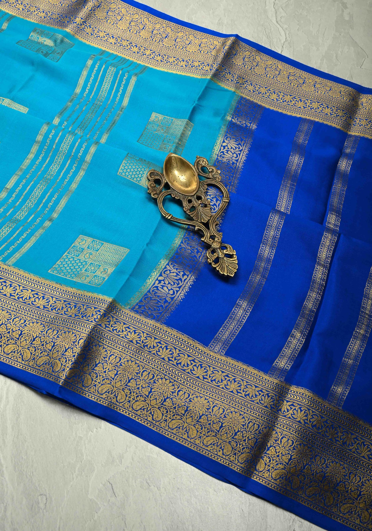 KSIC Grade Thickness Ananda Blue Zari Stripes on Mysore Silk Saree with Zari Buttas and Zari Border | SILK MARK CERTIFIED