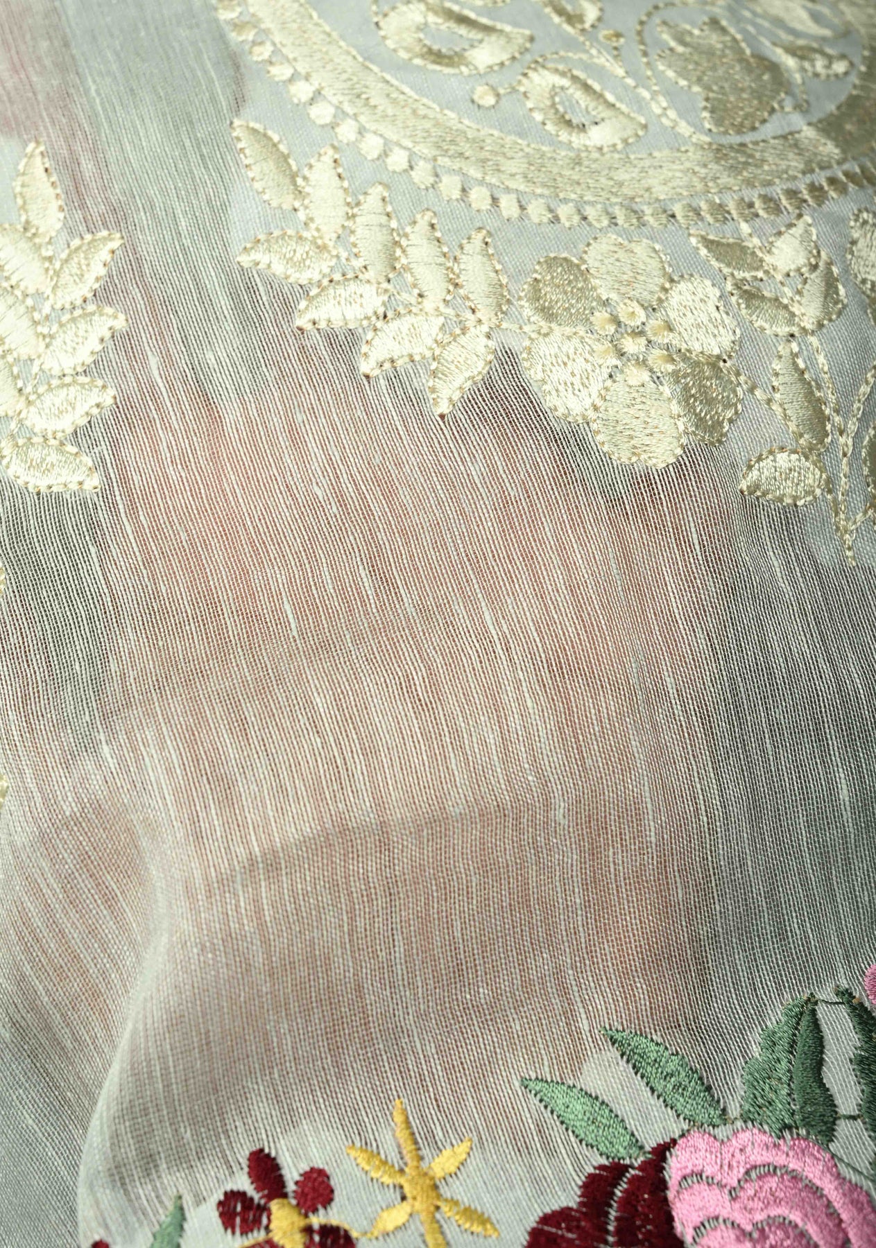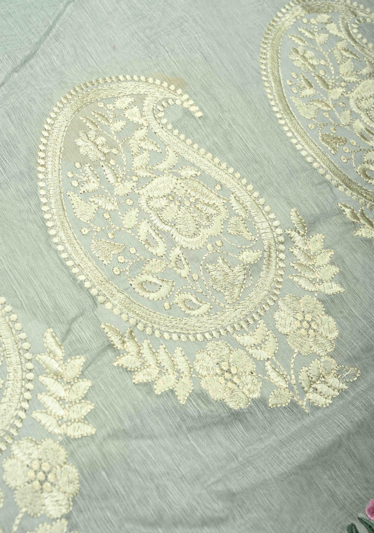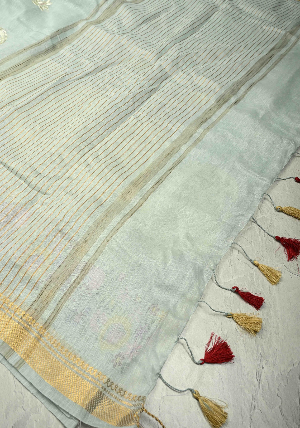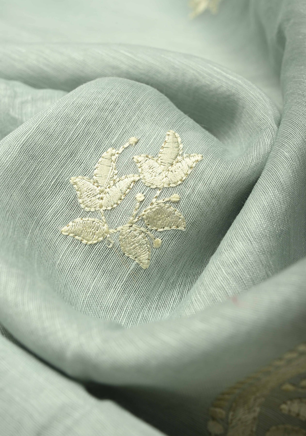 This Ash Gray Silk Linen Saree is a sophisticated and contemporary take on traditional elegance. The ash gray base is adorned with delicate paisley motifs, adding a subtle charm to the fabric. Complementing the motifs, intricate floral machine embroidery enhances the overall design with refined detailing, while the minimal zari border adds a touch of understated shimmer without overwhelming the saree. Crafted from a silk-linen blend, the saree offers a lightweight, breathable drape that combines comfort with elegance. Ideal for festive occasions, formal events, or cultural gatherings, this saree embodies modern grace with traditional artistry.