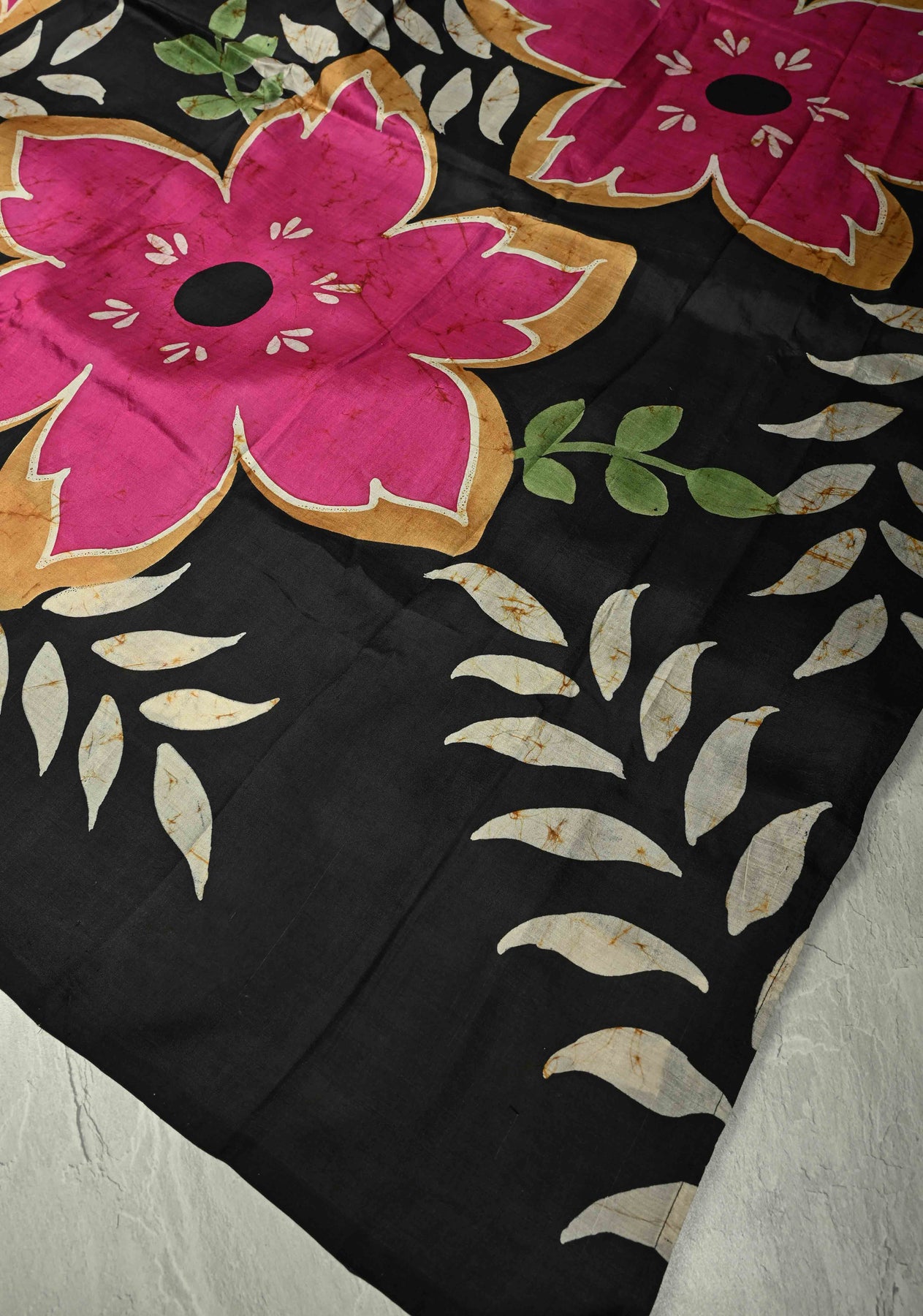 Beige Bishnupuri Silk Saree with Floral Hand Wax Batik | SILK MARK CERTIFIED