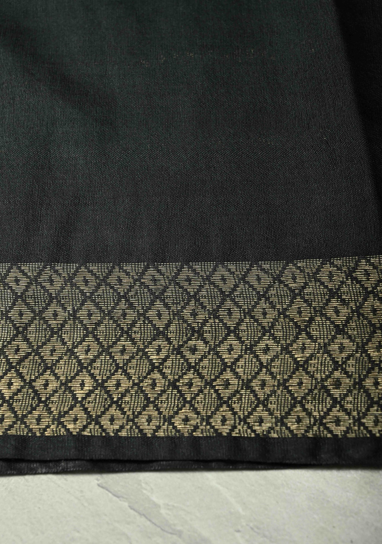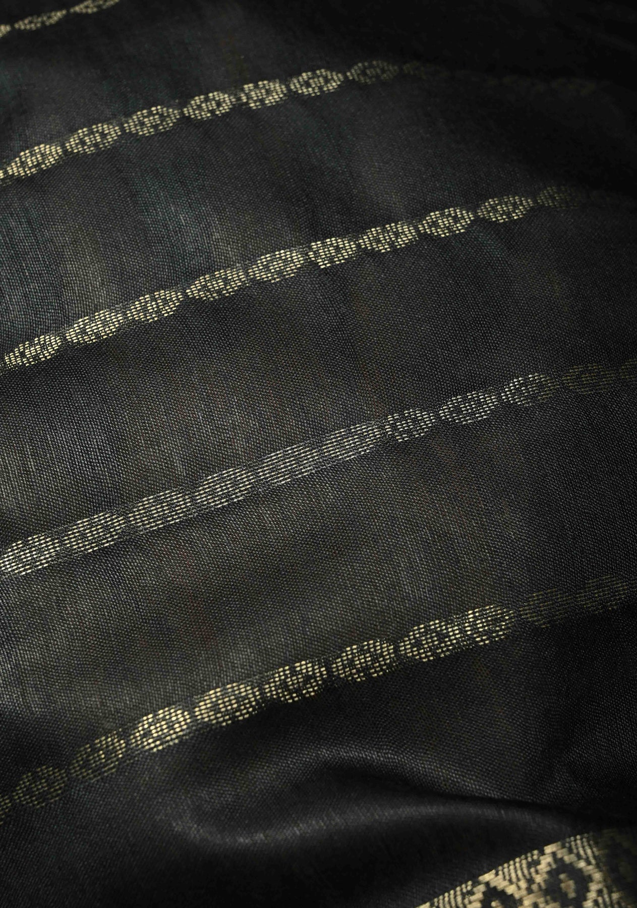 Black Semi Tussar Saree with Zari Stripes and Zari Border