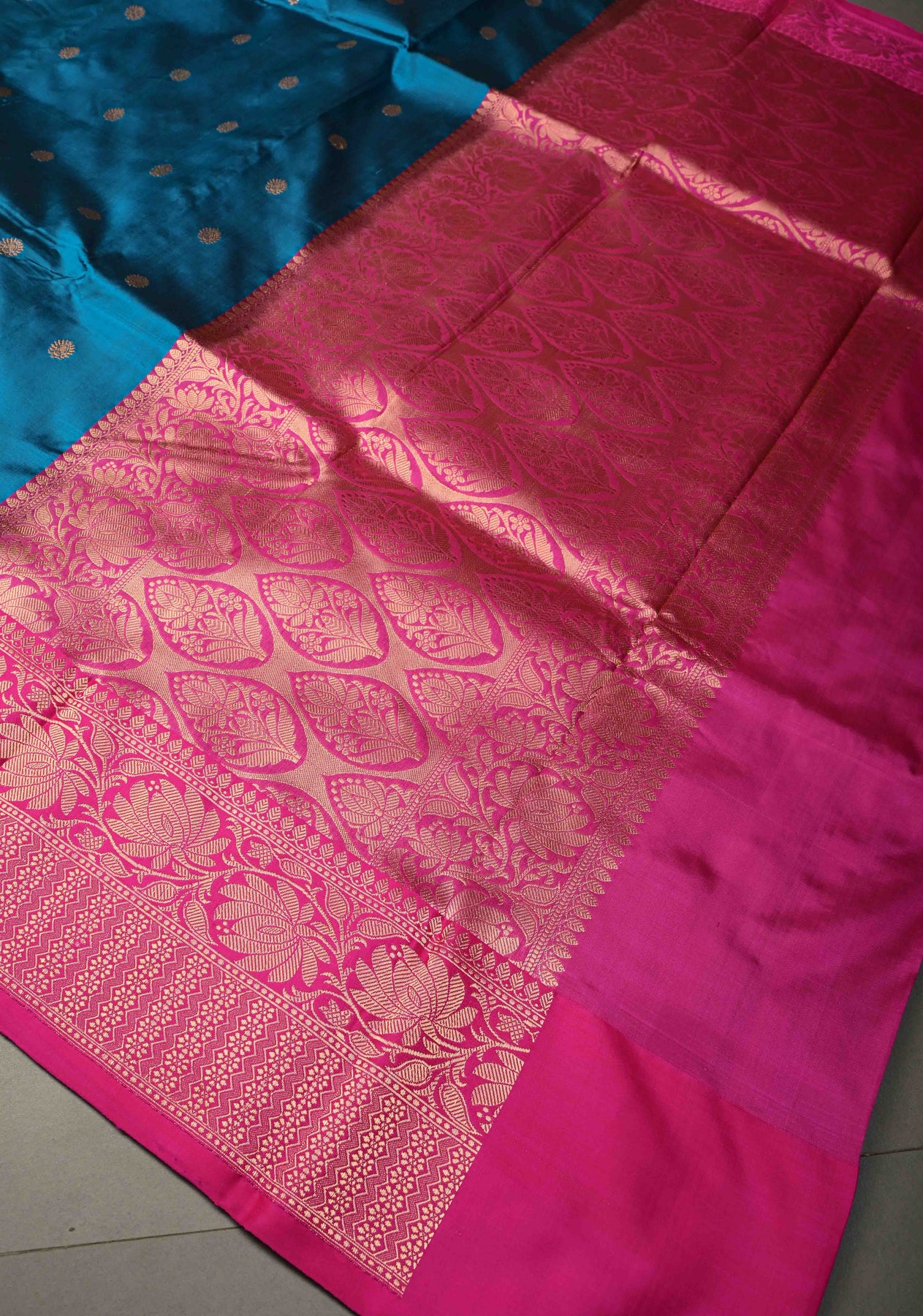 Elegant and timeless, this Blue Banarasi Katan Silk Saree celebrates the of traditional Banarasi weaving. Crafted from pure Katan silk, the saree features a smooth texture and graceful drape that reflects true craftsmanship.