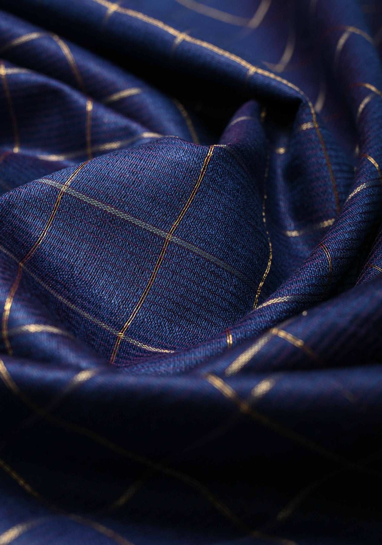 Ink Blue Semi Tussar Saree with Zari Checks and Zari Border