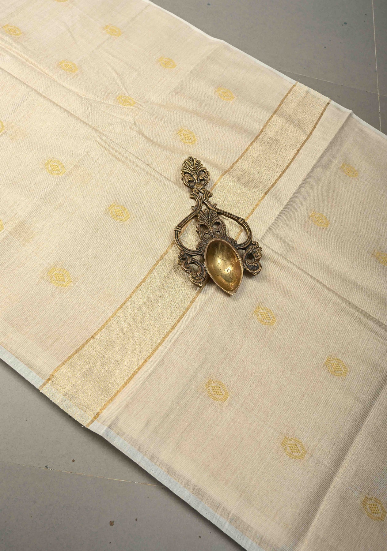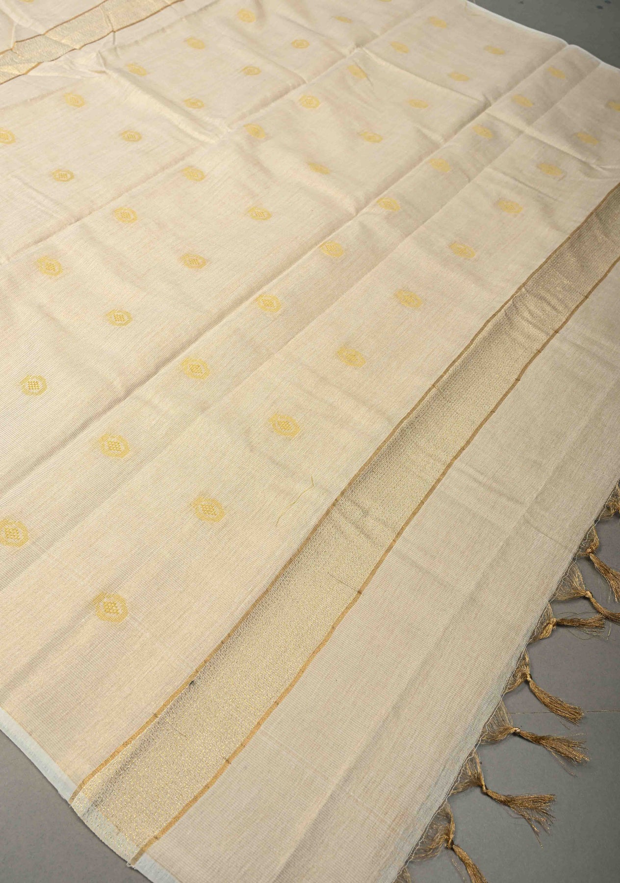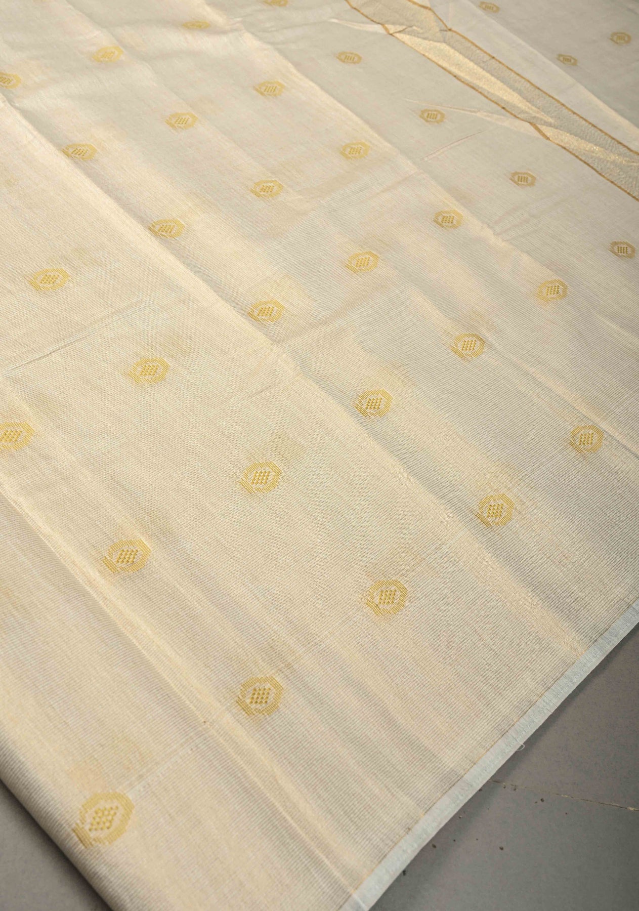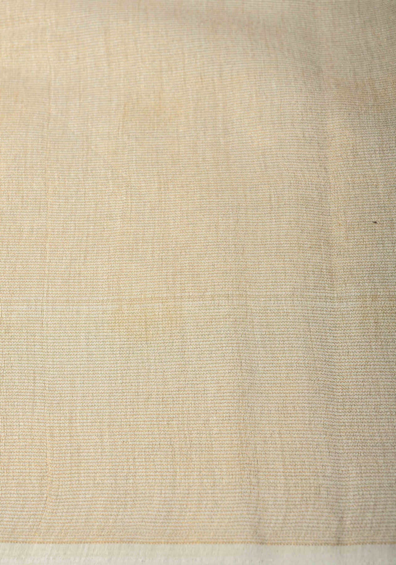 The Ivory Borderless Semi Tussar Tissue Saree with Thread Buttas is a stunning blend of minimalism and elegance. The ivory-colored semi-tussar tissue fabric provides a refined and airy drape, perfect for creating a graceful silhouette. The borderless design offers a modern, understated look, allowing the intricate thread buttas scattered across the body to take center stage. These delicate thread buttas add a touch of texture and artistry, elevating the saree’s appeal without overpowering its simplicity. Ideal for daytime events, casual gatherings, or semi-formal occasions, this saree combines timeless elegance with contemporary charm.