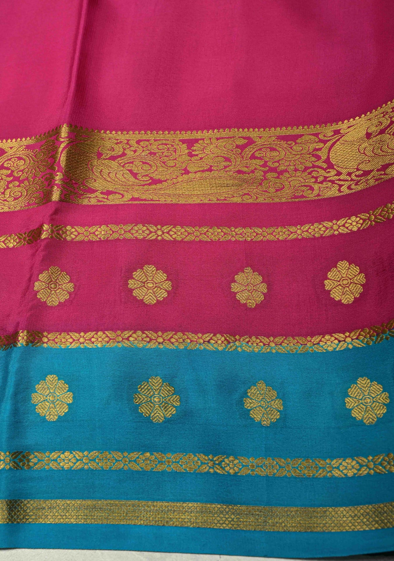 Pair it with gold or silver jewelry and a matching blouse to create a refined, regal ensemble that highlights the timeless beauty of Mysore silk.