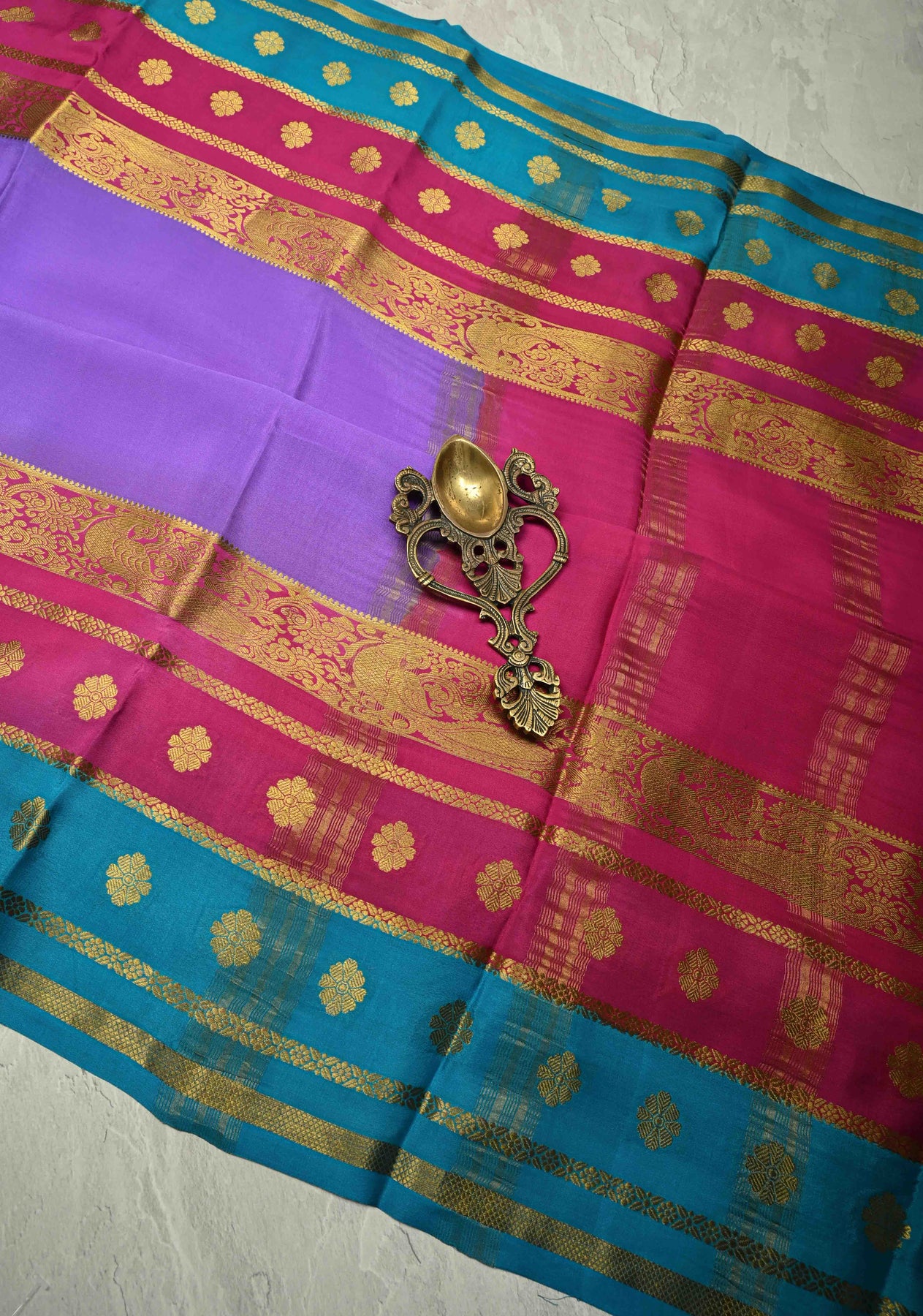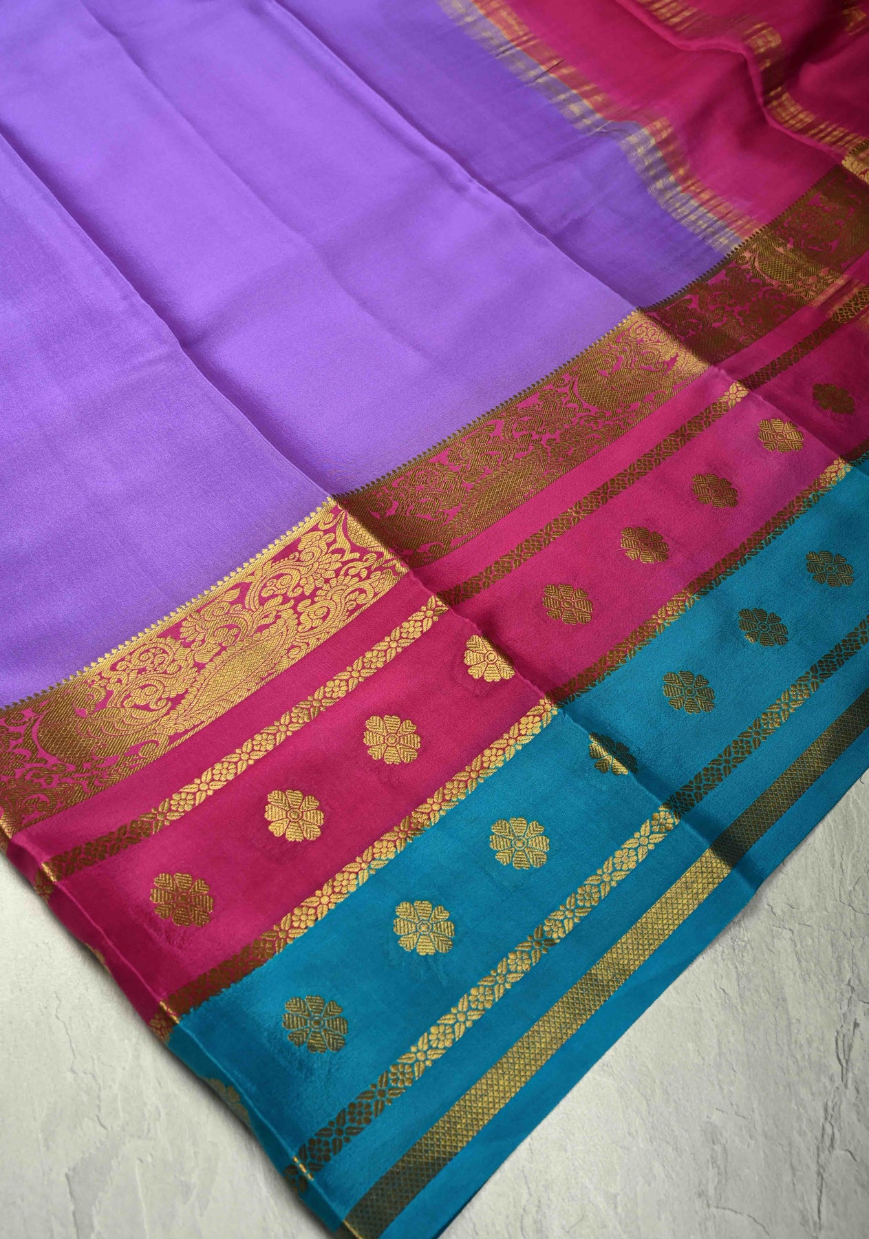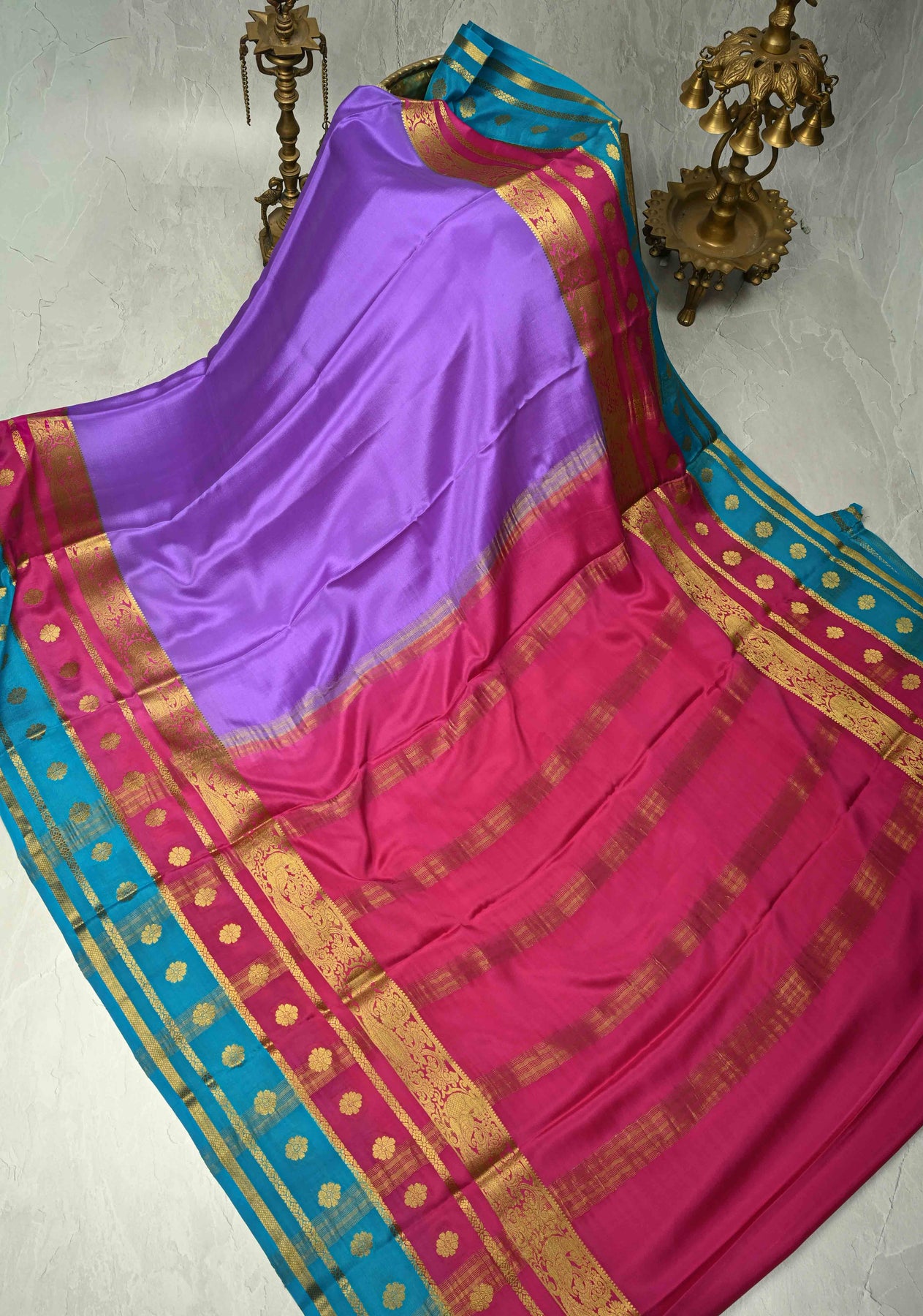 Embrace grace and sophistication with this Lavender Pure Mysore Silk Saree, crafted from silk that offers a smooth, lustrous finish and a flowing drape. Perfect for weddings, festive celebrations, and traditional events, this saree exudes elegance and feminine charm.