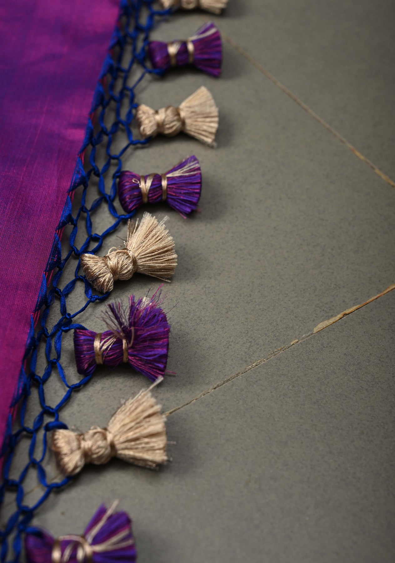 This saree is ready to wear with fall and pico done. Handmade silk tassels adorn the pallu and add more grace to it. An unstitched blouse fabric is included.