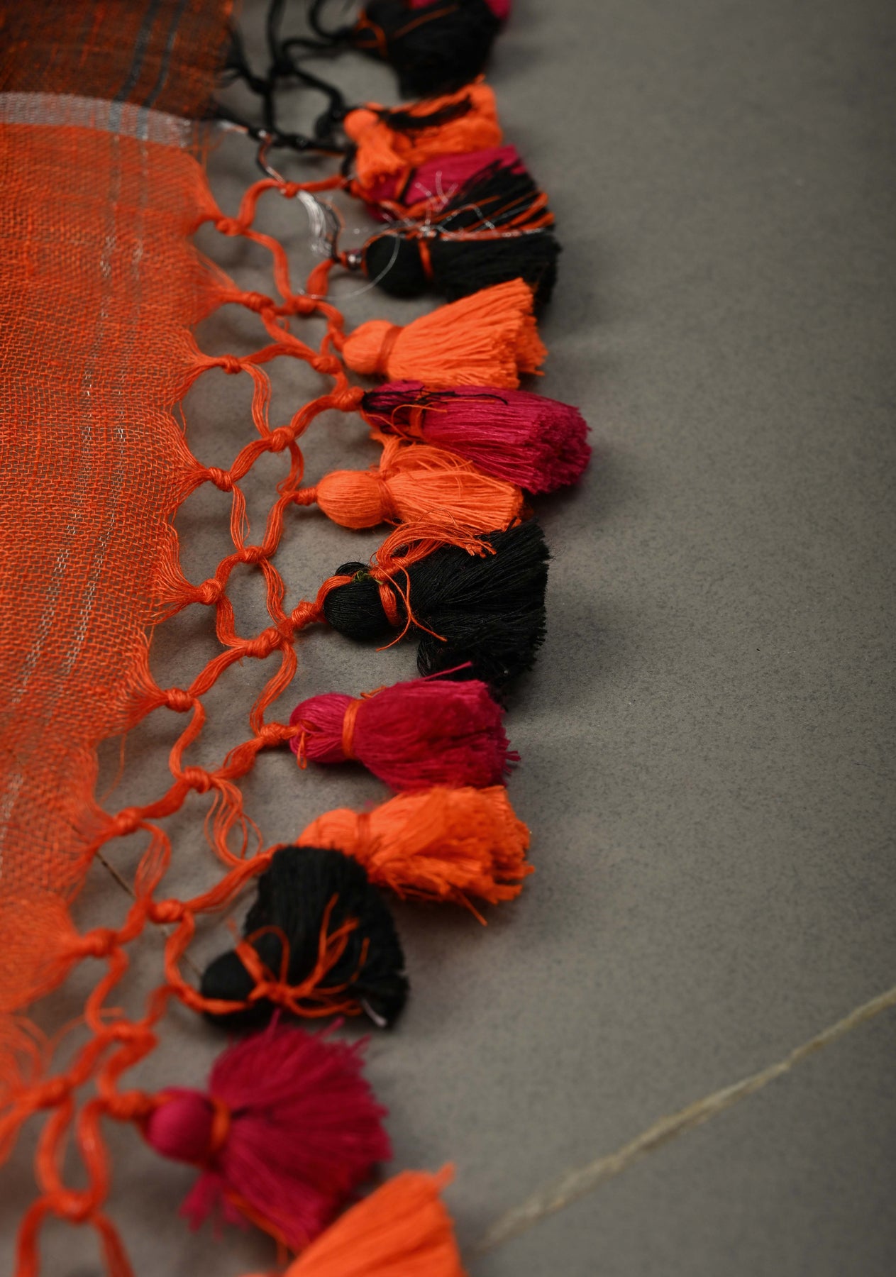 This saree is ready to wear with fall and pico done. tassels adorn the pallu and add more grace to it. An unstitched blouse fabric is included.