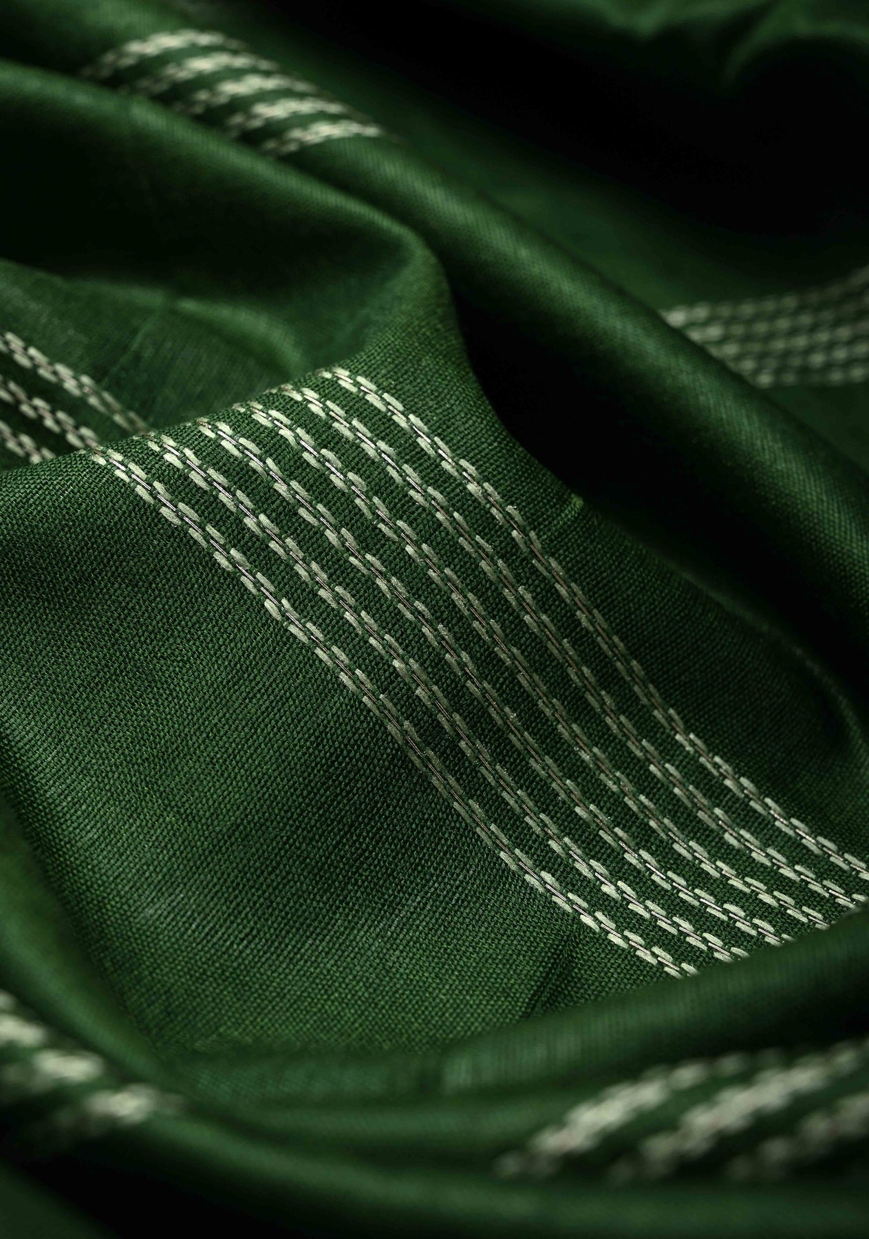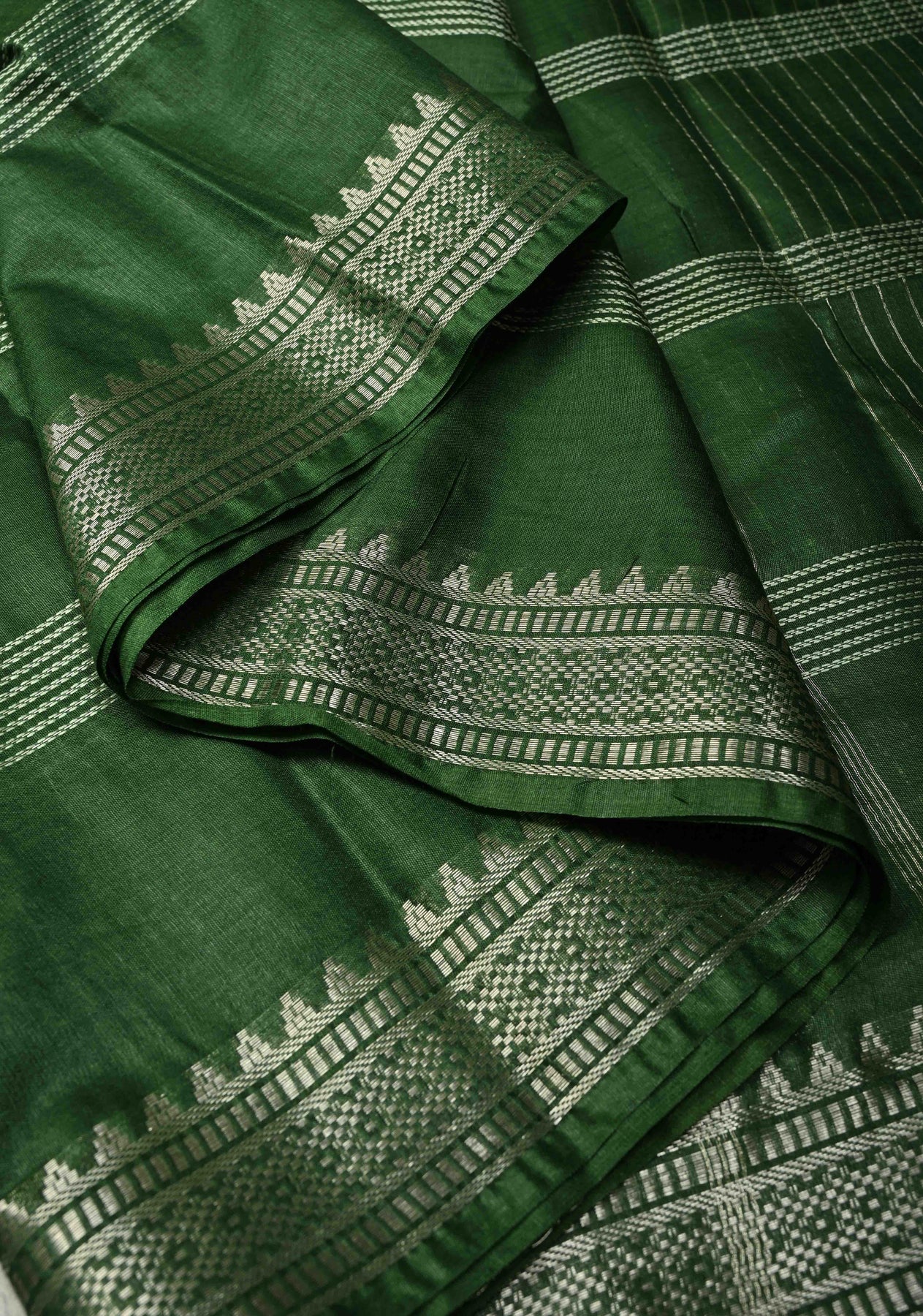 Add a touch of tradition and elegance to your wardrobe with this Myrtle Green Semi Tussar Saree, crafted from soft, breathable semi-tussar fabric that drapes gracefully. The refreshing myrtle green body features delicate thread stripes, offering subtle texture and a contemporary charm. A beautifully detailed temple-inspired zari border adds a regal touch, blending heritage motifs with modern sophistication. Perfect for festive occasions, temple visits, weddings, and cultural events, this saree is lightweight, elegant, and effortlessly stylish.