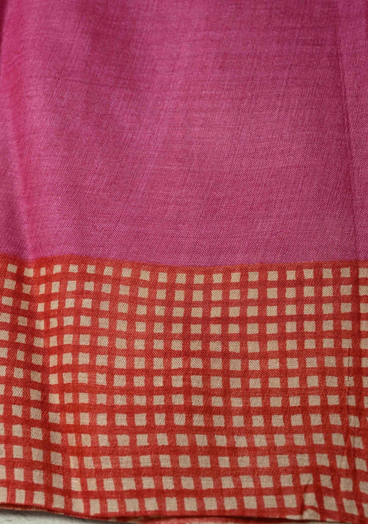 This stunning Pink-Peach Ombre Pure Handloom Jari Tussar Silk Saree is a true embodiment of traditional artistry and modern elegance. Handwoven from tussar silk with delicate jari accents, it radiates a soft sheen and luxurious texture. The mesmerizing ombre effect transitions gracefully from pink to peach to red, creating a captivating visual harmony. The saree is further enhanced with intricate handblock prints on the border and pallu, adding a touch of artisanal charm and cultural richness. Perfect for festive occasions, weddings, and elegant gatherings, this saree is a timeless blend of craftsmanship, color, and sophistication.