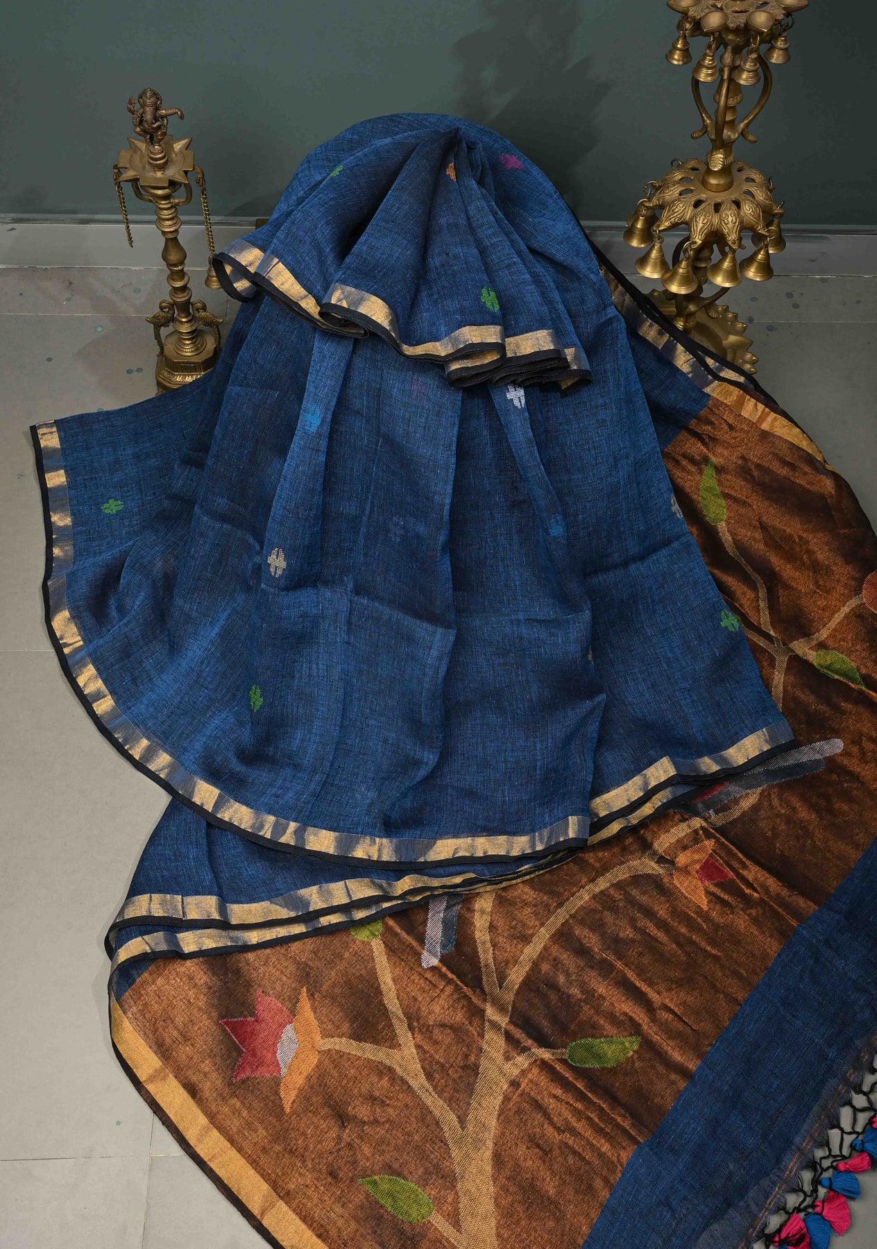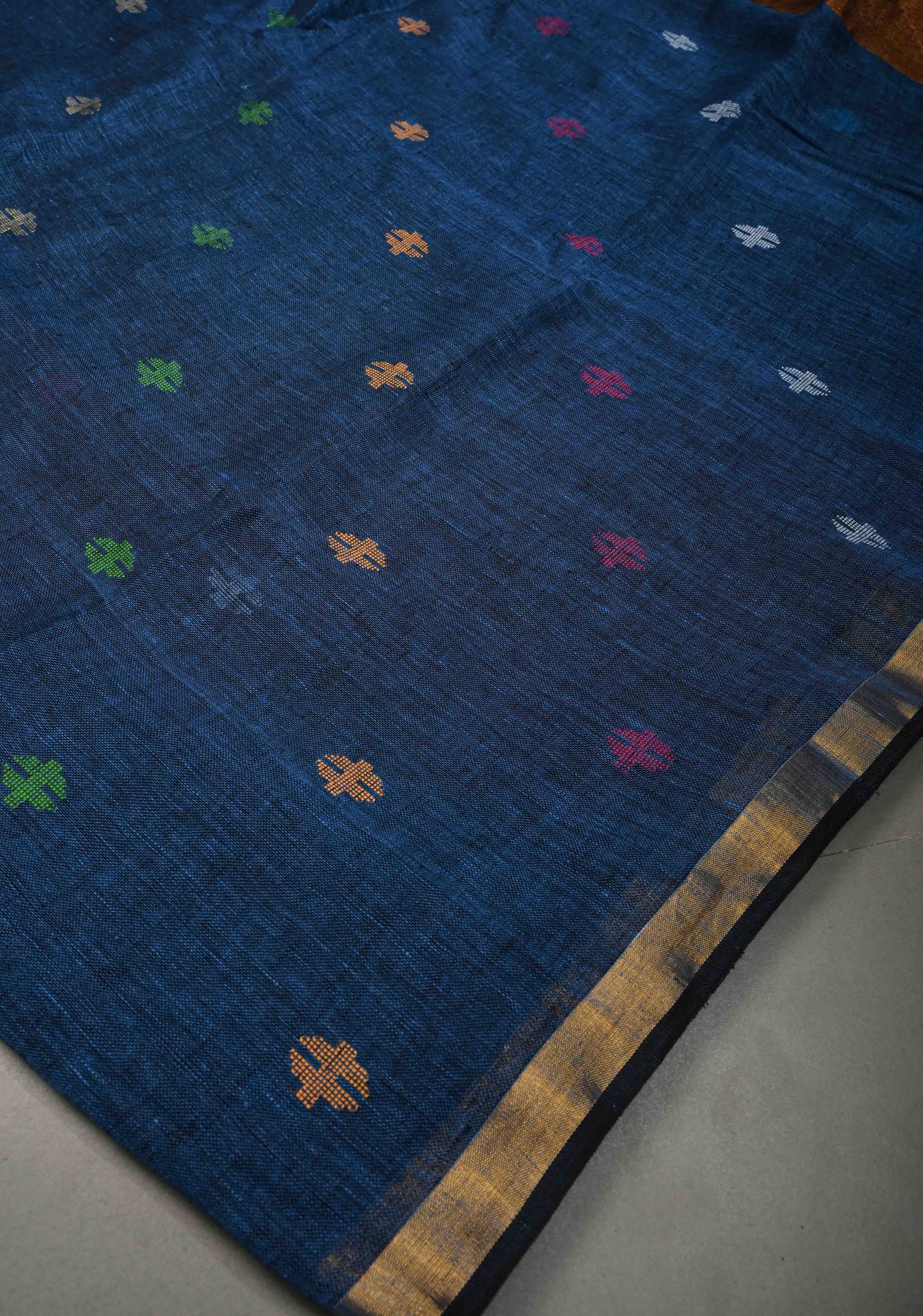 Enhance your ethnic wardrobe with this Royal Blue Handloom Linen by Linen Saree, a perfect blend of comfort, craftsmanship, and understated elegance. Woven from soft linen-linen fabric, it offers a lightweight, breathable drape with a graceful flow, making it ideal for casual outings, office wear, or semi-formal occasions.