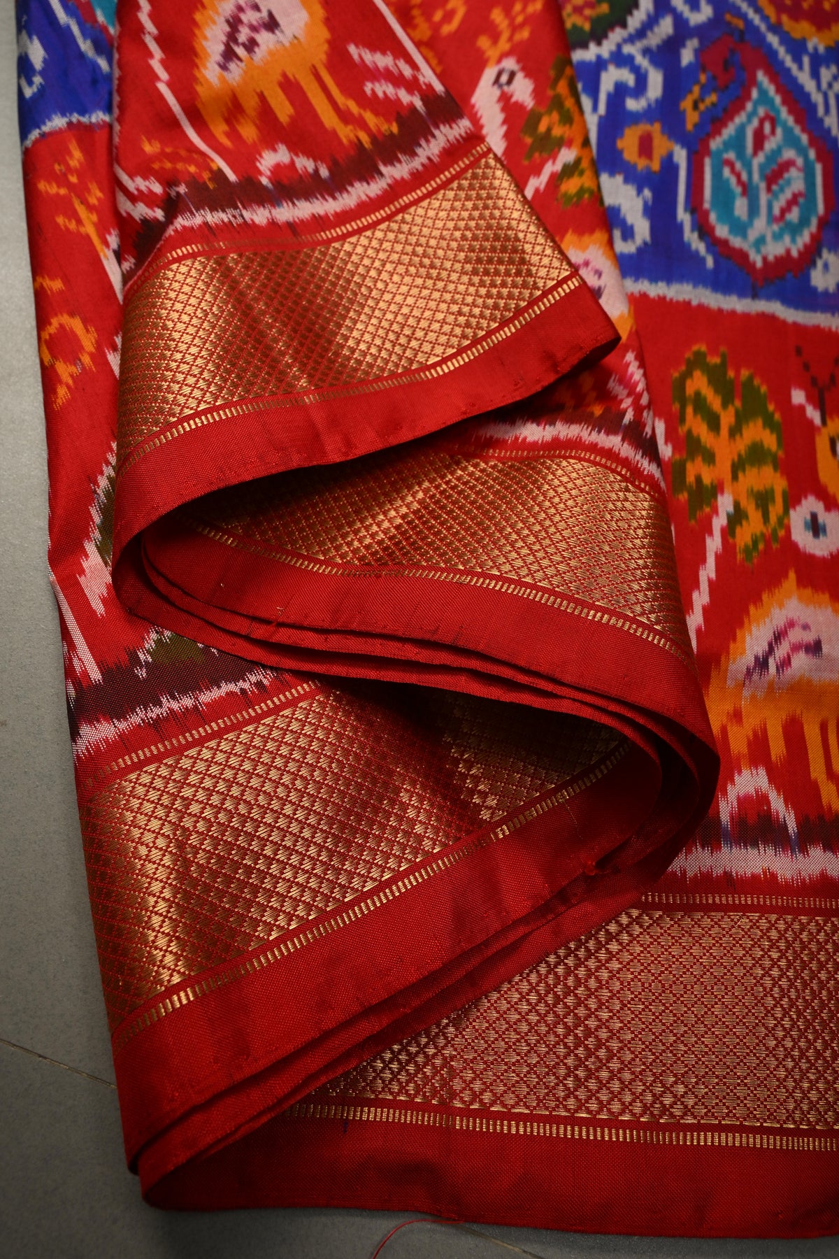 Celebrate vibrant tradition with this Royal Blue Pochampally Ikkat Pure Silk Saree, a stunning showcase of masterful craftsmanship and artistic detail. Woven from pure silk, the rich royal blue body features the signature Pochampally ikkat patterns that create a captivating play of symmetry and color. The saree is elevated with an exquisite Pashmina brocade weave, adding depth and texture to its elegant drape. A striking crane birds panel adorns the contrast zari border, lending a graceful and distinctive charm inspired by nature. Perfect for weddings, festive celebrations, and special occasions, this saree blends heritage weaving techniques with regal sophistication.