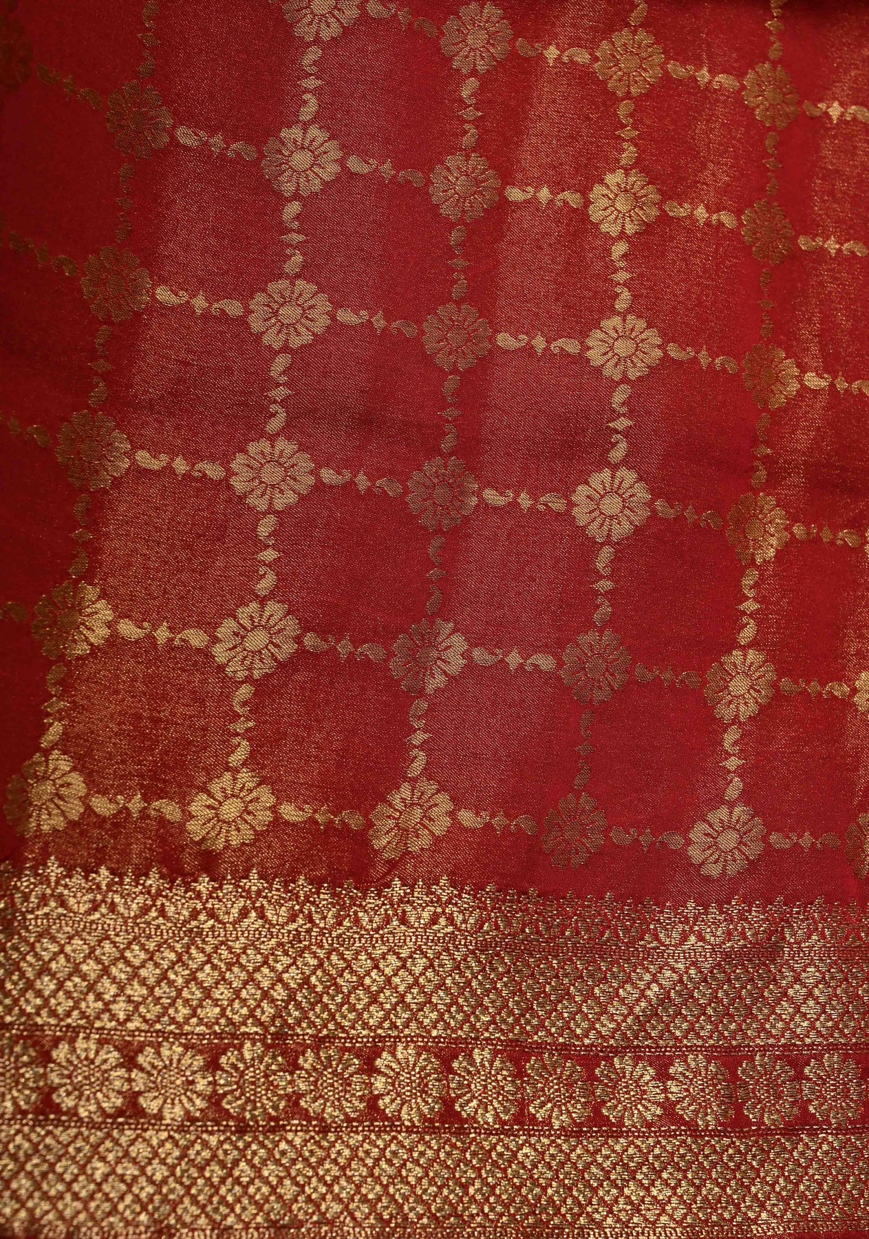 Radiate festive elegance with this Reddish Orange Vegan Viscose Silk Saree, featuring intricate floral brocade motifs and a classic zari border. Crafted from lightweight vegan viscose silk, the saree offers a soft, fluid drape that ensures comfort and graceful movement. The vibrant reddish-orange hue enhances the detailed floral brocade, creating a striking yet sophisticated look. Perfect for weddings, festive celebrations, and evening occasions, this saree seamlessly blends contemporary style with traditional craftsmanship.