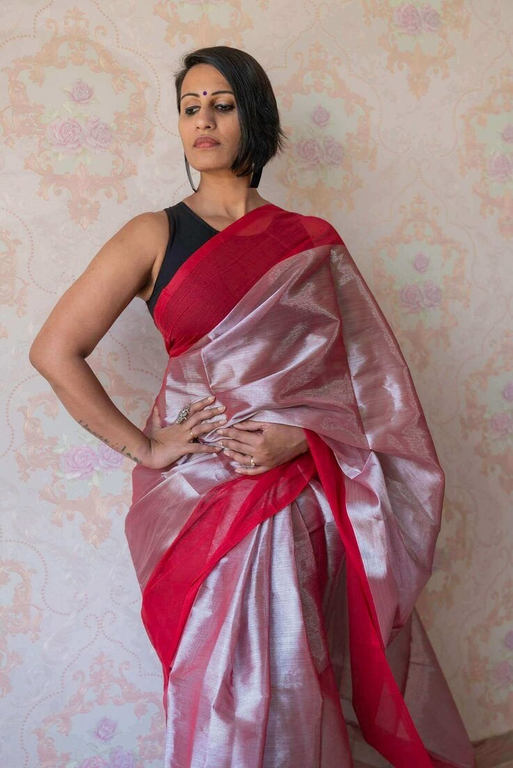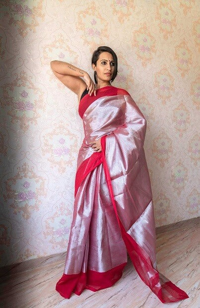 An eclectic intertwining of silver and red threads , this creation is a shining example of style that is woven in this stunning six yards of gorgeousness. This cotton saree is woven to perfection for the beautiful you. Drape this saree for a simple brunch or for your next workwear. It surely will not fail to impress.