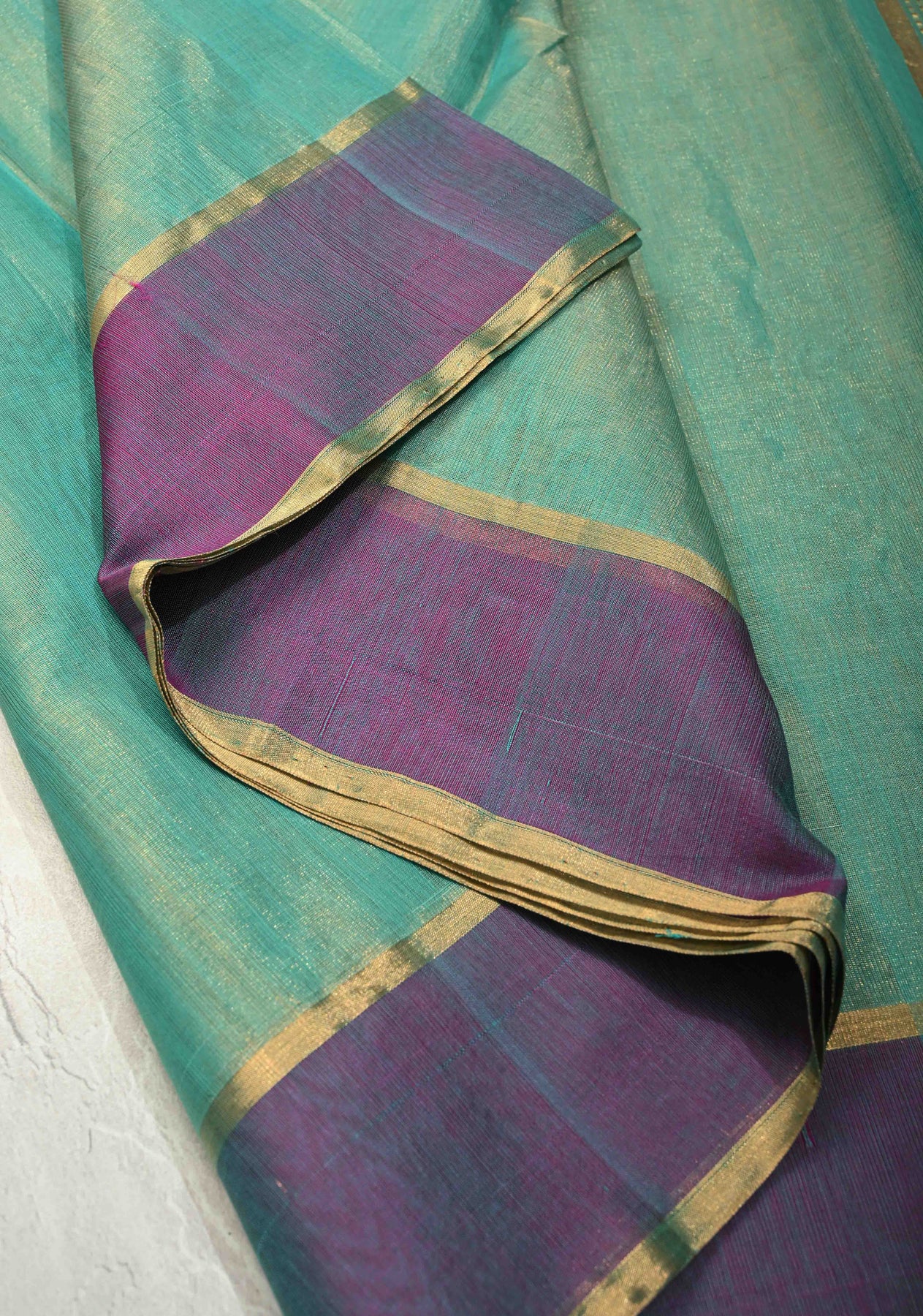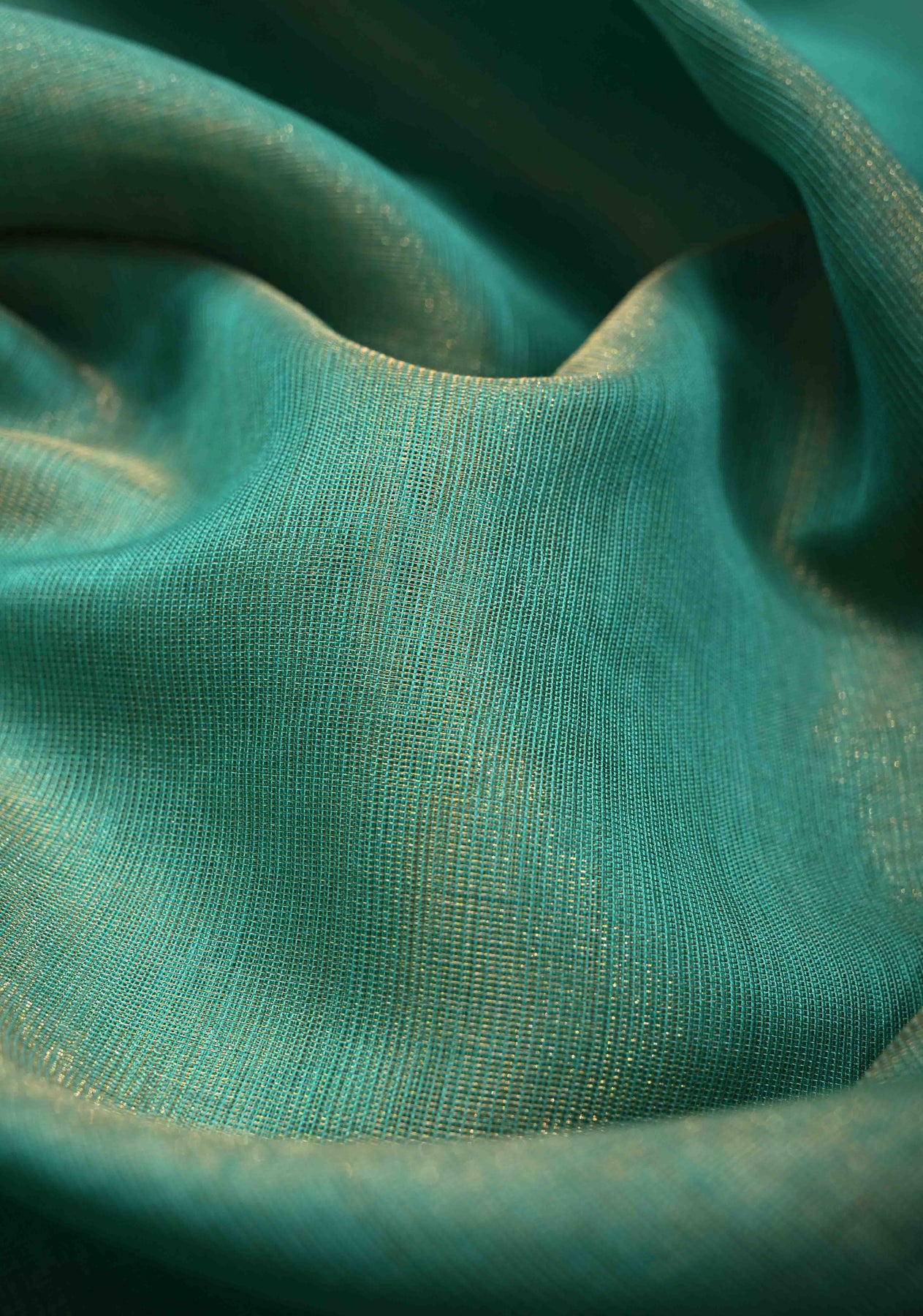 Turquoise Blue Tissue Chanderi Silk Cotton Saree Jharna