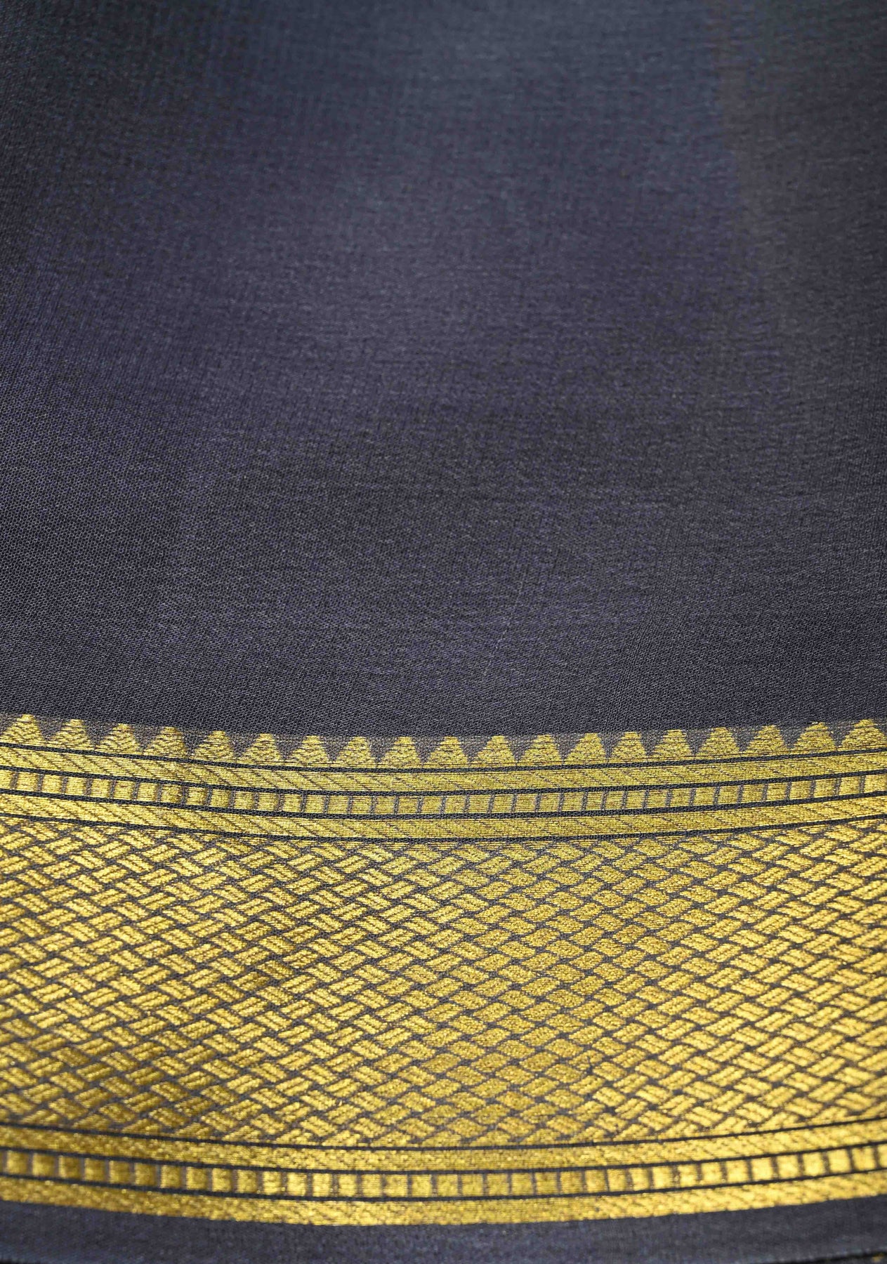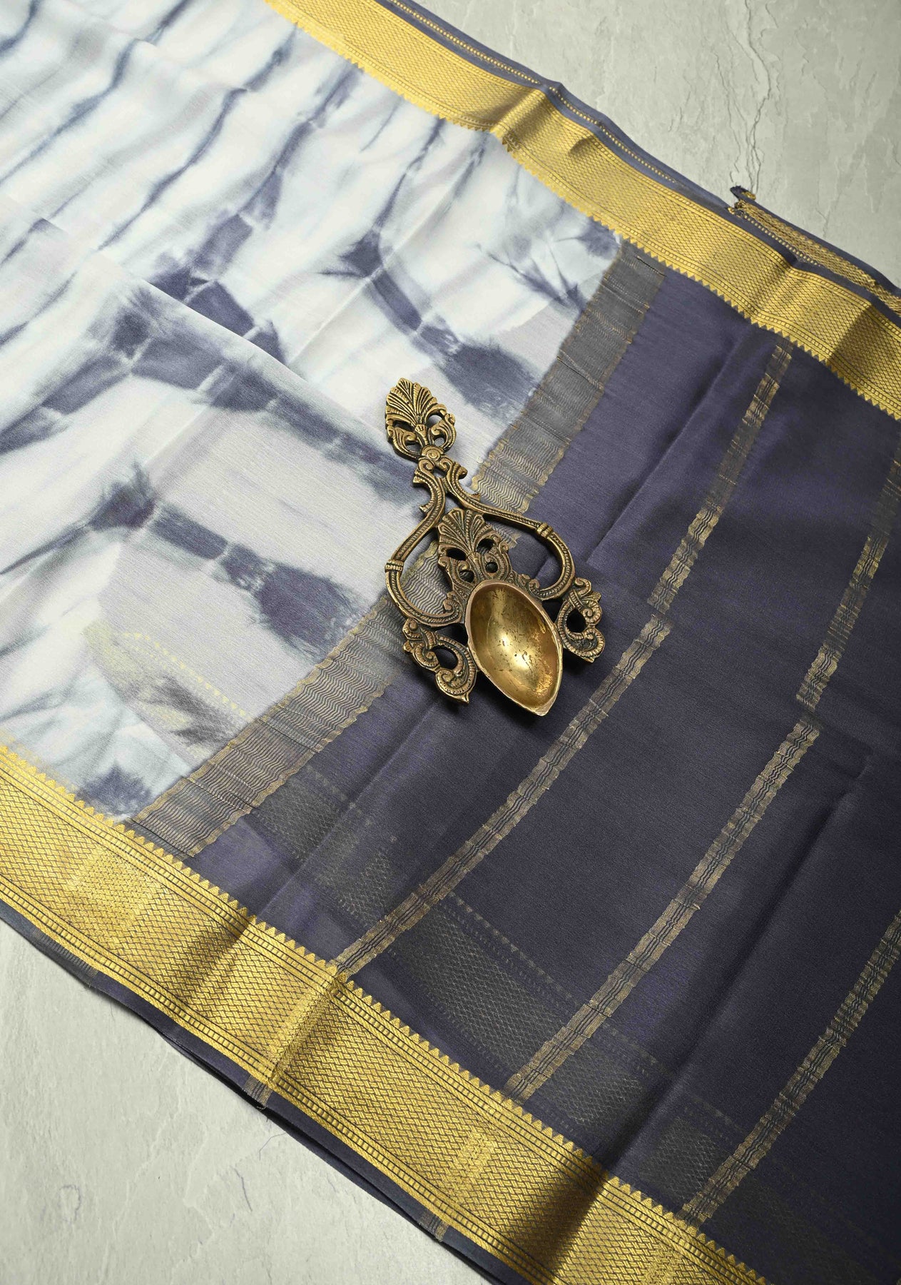 White-Gray Mysore Crepe Silk Saree with Shibori Dye and Zari Borders | SILK MARK CERTIFIED