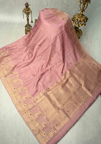 Dusty Mauve Self Checks on Banarasi Semi Crepe Saree with Meenakari Zari Detailing and Border