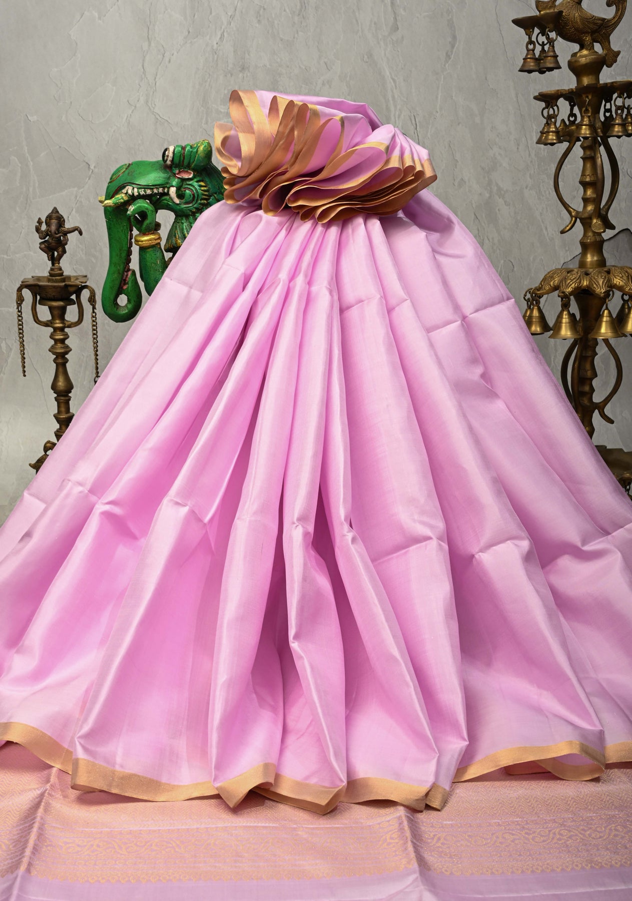 Lilac-Pink Lightweight Pure Kanjivaram Soft Silk Saree with Minimal Tissue Zari Border | SILK MARK CERTIFIED