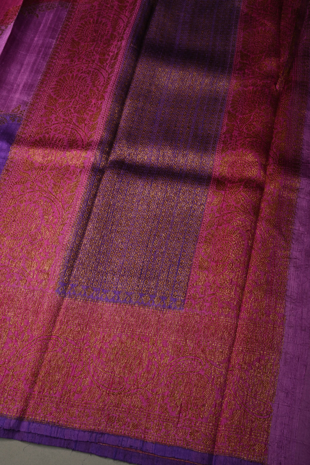 Dark Violet Semi Banarasi Silk Blend Saree With Zari Woven Work | Shobitam